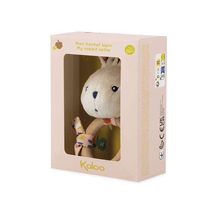 Este sonajero de conejo es perfecto para el bebé que empieza a explorar el mundo. Con su anilla de madera lisa, el pequeño podrá agarrarlo fácilmente, promoviendo el desarrollo de su motricidad fina.
