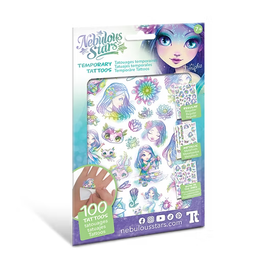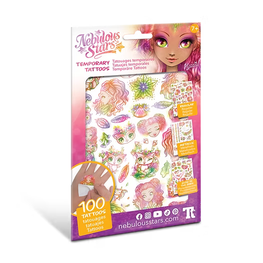Con este genial kit de tatuajes de fantasía, inspirado en el mundo de las Nebulous Stars, las peques podrán convertirse en auténticas tatuadoras. Las ilustraciones son monísimas y las peques podrán elegir entre 100 tatuajes de estilos diferentes, brillantes, metalizados o de brillo en la oscuridad.