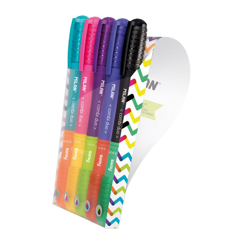 Estuche con 5 bolis = 10 colores intensos, con cuerpo del mismo color que la tinta.