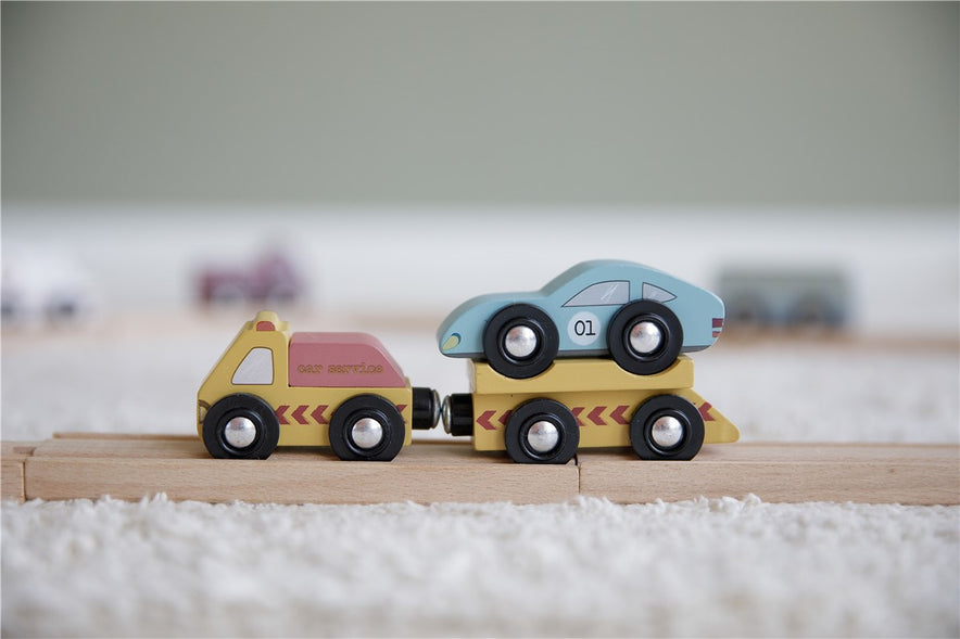 Estos vehículos de servicio y emergencia de madera están diseñados para complementar el juego de trenes de madera de Little Dutch. 🚒🚓 Los neumáticos están diseñados para ser compatibles con los rieles, permitiendo que los vehículos circulen por la ciudad y lleguen a donde se les necesite. ¡Los pequeños podrán crear emocionantes escenarios de rescate y servicio! 🔧🚑