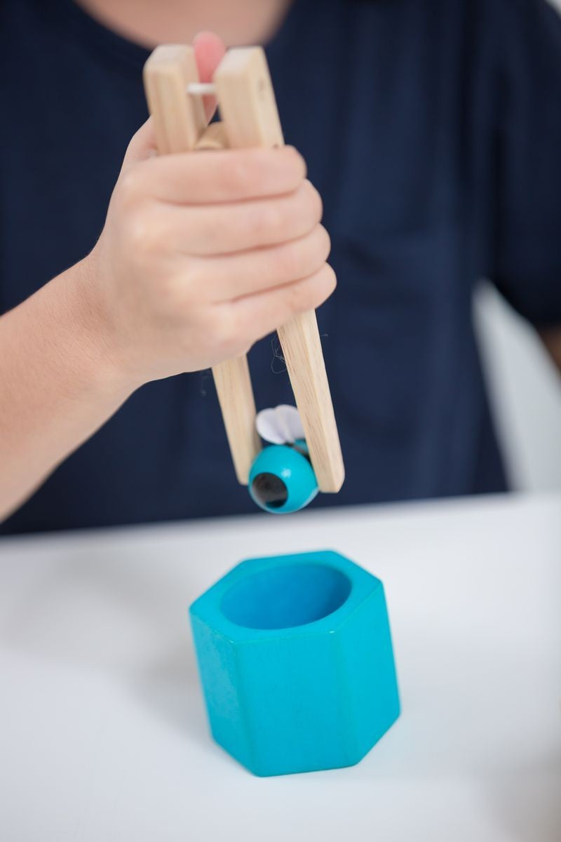 Invita a los pequeños a separar cada abeja de su colmena y luego usar las pinzas para devolverlas a su hogar correcto. Las colmenas también se pueden apilar y clasificar para agregar un toque extra de juego educativo.