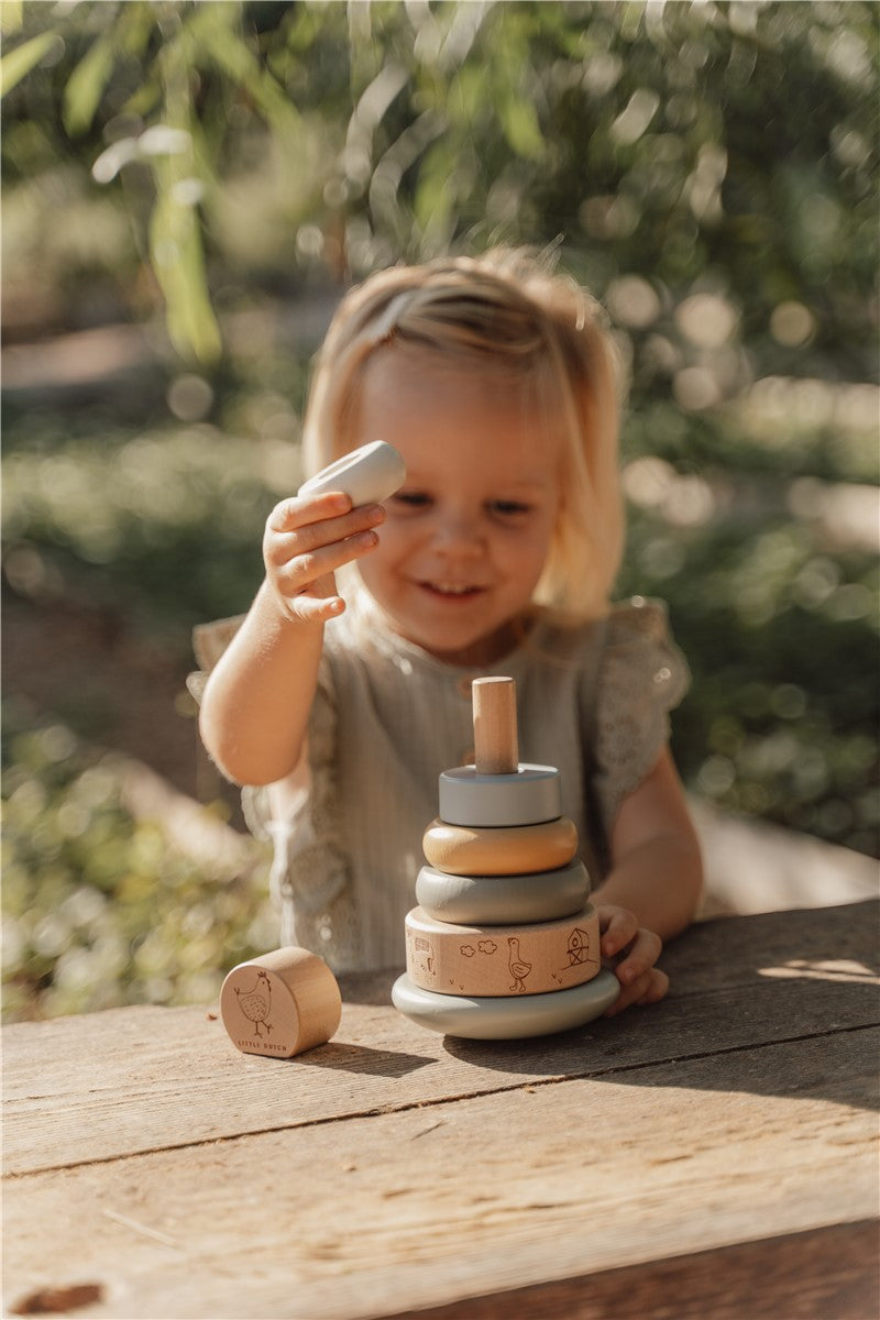 Esta torre apilable de madera con temática de Little Farm es perfecta para fomentar la coordinación mano-ojo mientras los niños se divierten jugando. 🌾🧸 Con su diseño atractivo, los pequeños son desafiados a colocar los anillos de madera en el orden correcto y apilarlos en la torre tambaleante. ¡El movimiento balanceante añade un toque de emoción extra! 😄 Sigue intentándolo, ¡seguro que lo conseguirás! Un juguete que inspira paciencia, concentración y diversión sin fin. 🎨✨