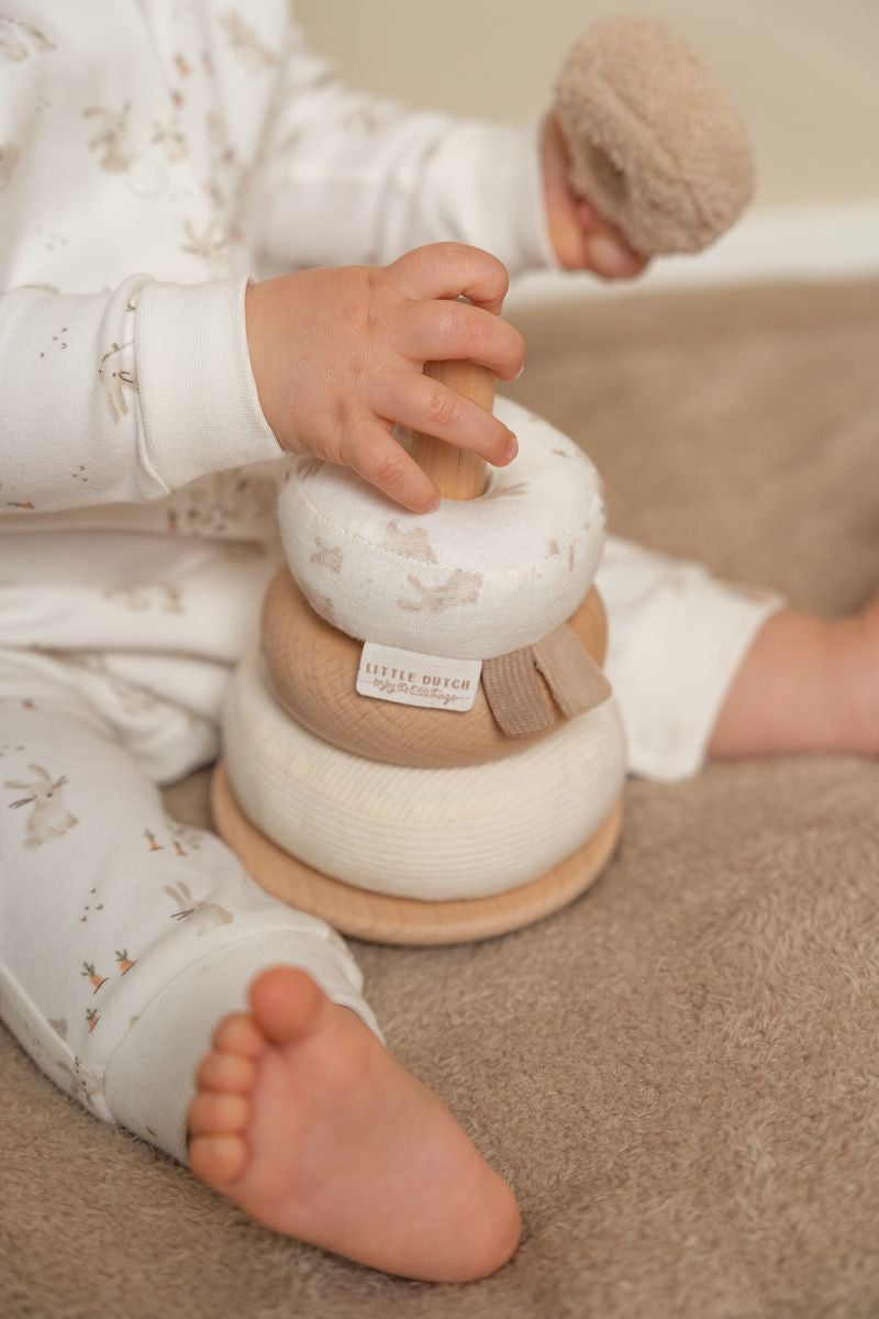Los anillos apilables de Little Dutch de la colección Baby Bunny 🐰 son ideales para fomentar la coordinación ojo-mano de los niños mientras disfrutan de un juego activo y divertido. 🎉 Este juguete está diseñado para que los más pequeños apilen los anillos de madera y tela en el orden correcto, creando una pirámide tambaleante. 🏰 ¡Es un desafío estimulante que les animará a seguir intentando y aprendiendo con cada intento! 👶✨