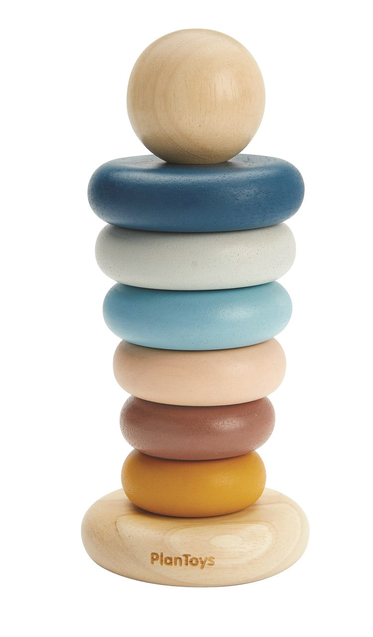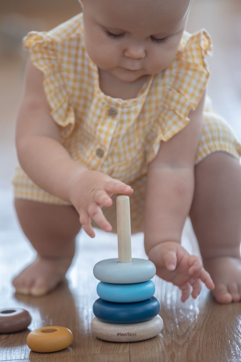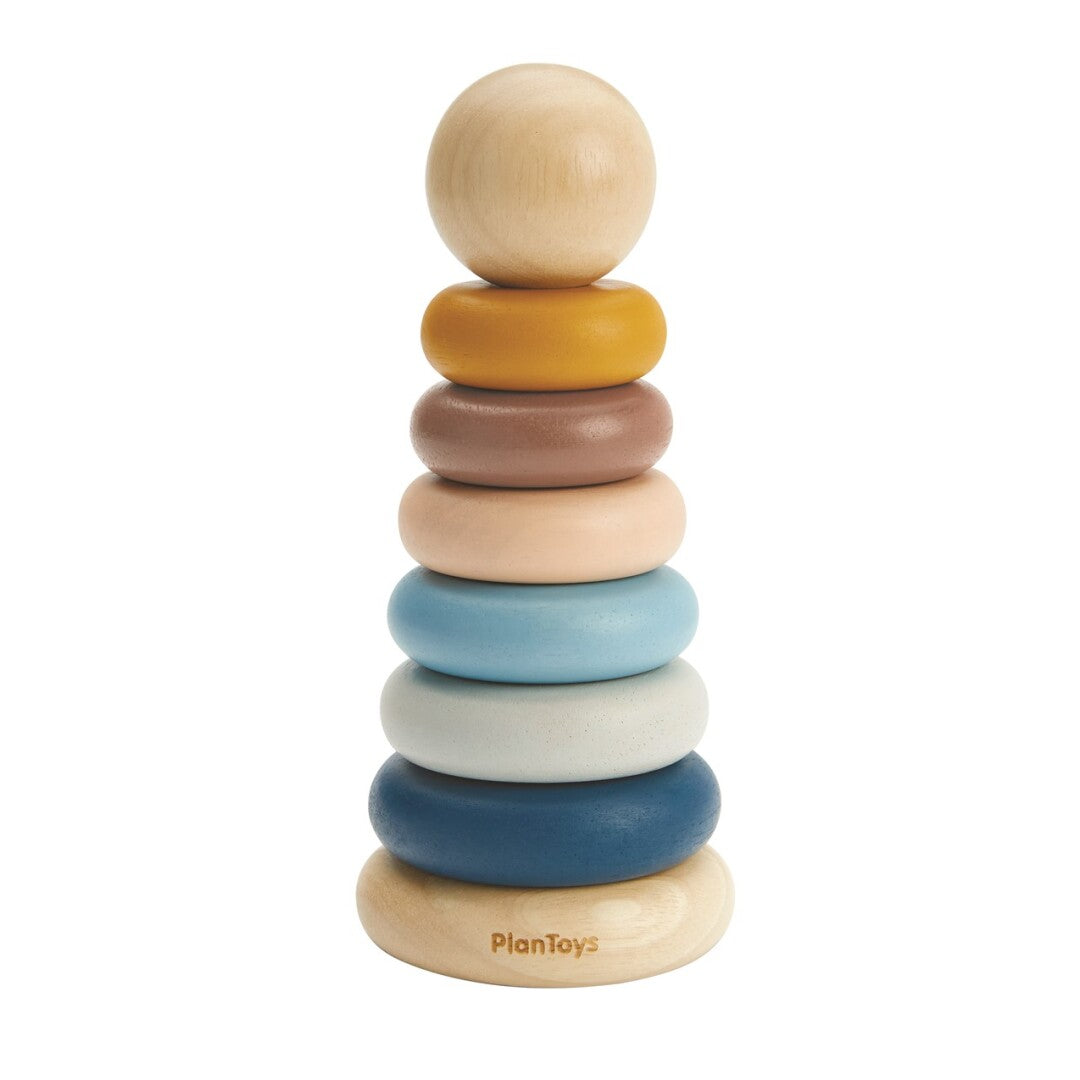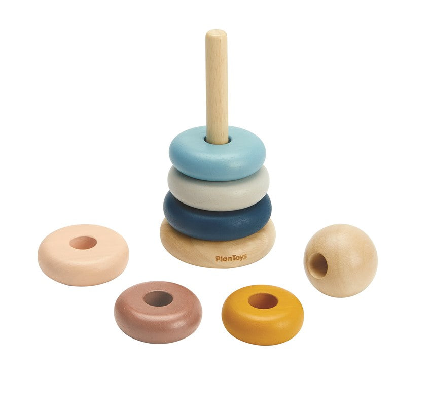 Los coloridos aros de madera del set PlanToys Stacking Ring ayudan a enseñar a los niños sobre tamaños y colores. 🌈 Para mayor seguridad, la varilla central es plegable, asegurando un juego sin riesgos. Esta versión del clásico Stacking Ring viene en la preciosa paleta de colores Orchard. 🌳