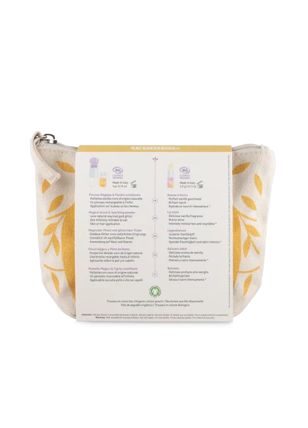 ESTUCHE ORO Pincel mágico + polvos dorados+ labial de vainilla