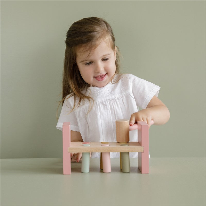 ¡Prepárate para la diversión sin fin! 🎉 Usa el mazo para golpear las 6 clavijas de colores en este banco de martilleo, un ejercicio perfecto para desarrollar la motricidad fina de los niños. 💪 Una vez que terminen, ¡pueden darle la vuelta al banco y empezar de nuevo! 🔄 Este juguete asegura que los niños estarán entretenidos durante horas mientras mejoran sus habilidades.