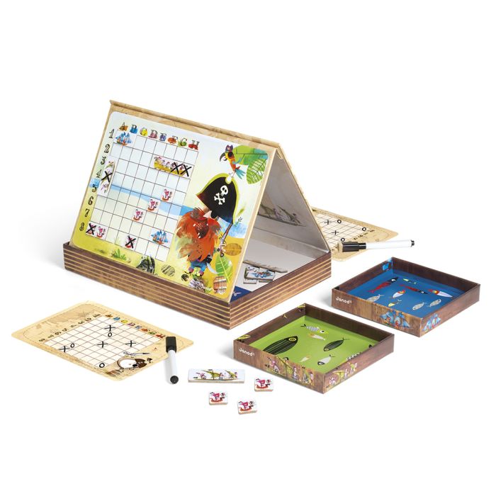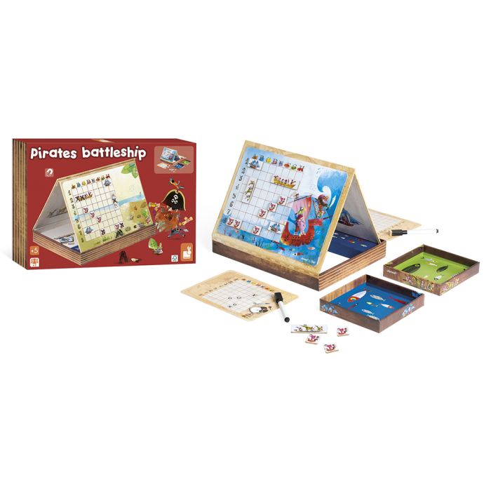 ¡Al abordaje, mis piratas! 🏴☠️ ¡Es hora de jugar a la mítica batalla naval con tus hijos y disfrutar de grandes momentos de emoción y estrategia! En esta versión de Janod, los piratas son magnéticos y ¡el juego cobra una nueva dimensión! ¡Es necesario pensar bien cada movimiento para hundir los barcos rivales primero!