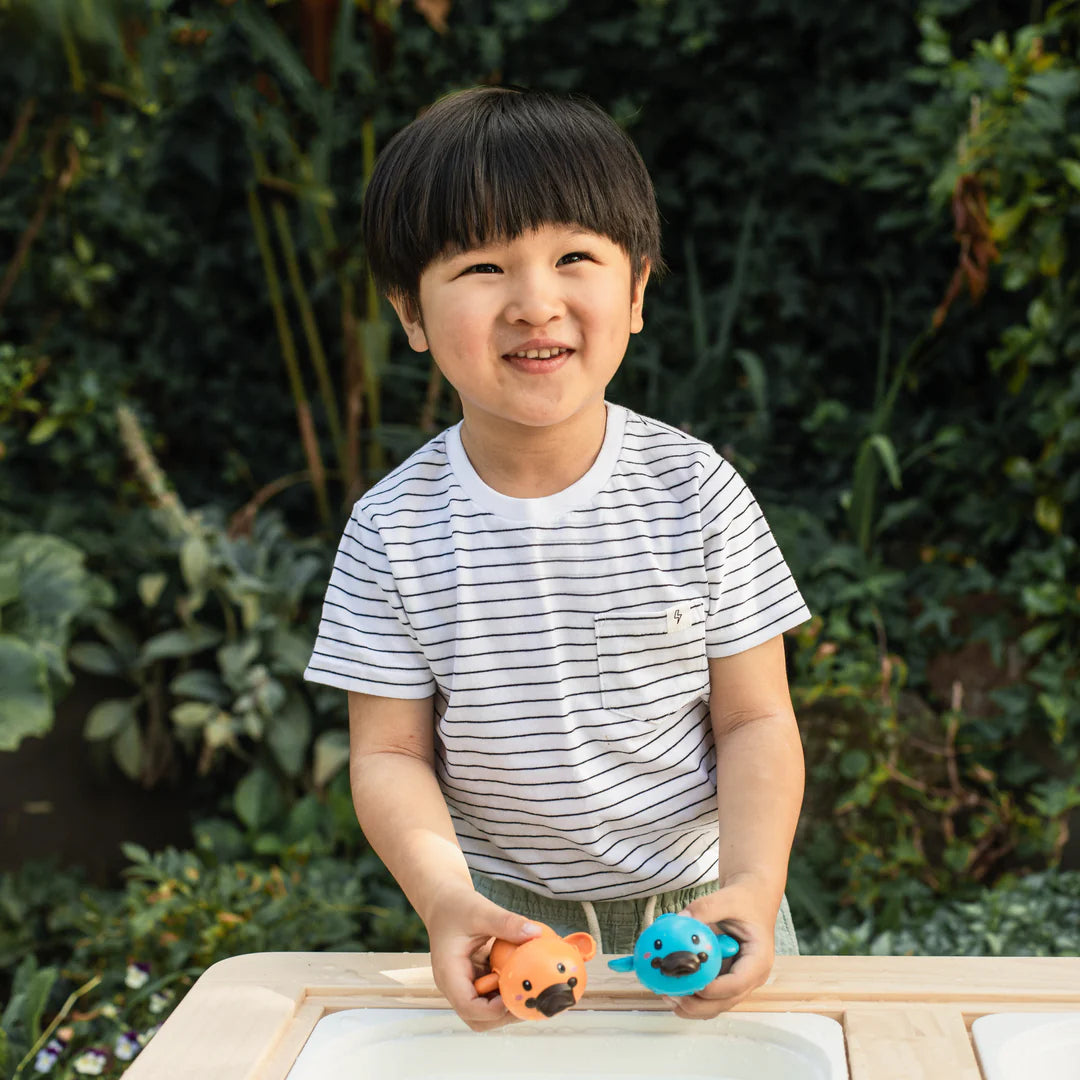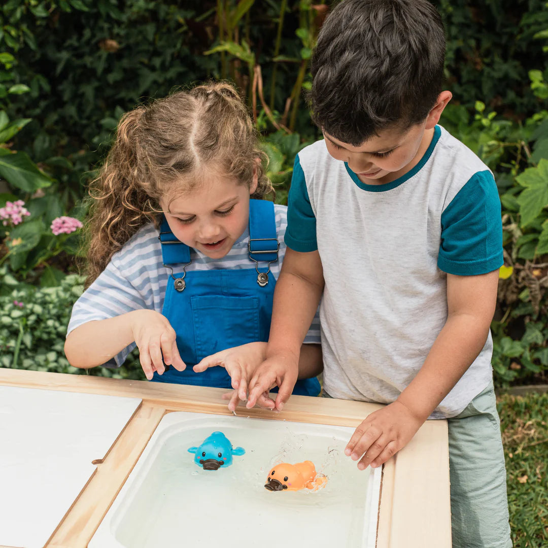 ¡Preparados, listos… ¡a salpicar! Estos dos encantadores patitos de carreras están listos para deslizarse por la bañera. Solo hay que darles cuerda, soltarlos en el agua y ver cómo agitan sus alitas para avanzar a toda velocidad.