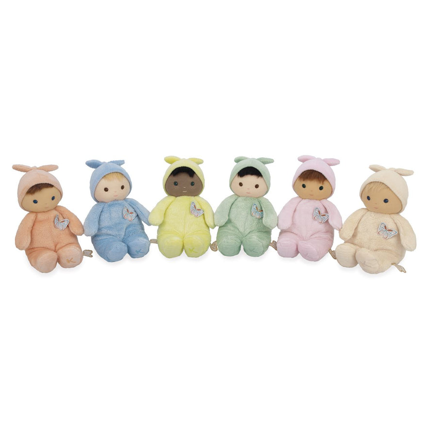 Descubre a Baby Zinnia, una encantadora y suave muñeca de tela diseñada para acompañar a los bebés desde su nacimiento. 🍼💛 Con su tamaño de 24 cm, es ideal como peluche o primera muñeca, ofreciendo ternura y diversión a partes iguales.