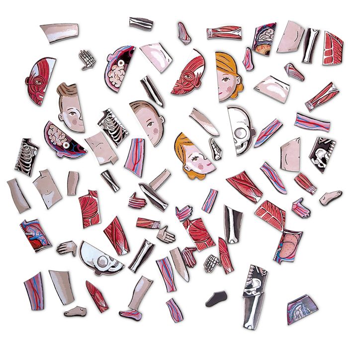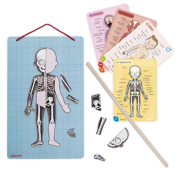 - Los niños deben reconstruir las diferentes partes del cuerpo humano usando 76 imanes en el soporte magnético incluido.