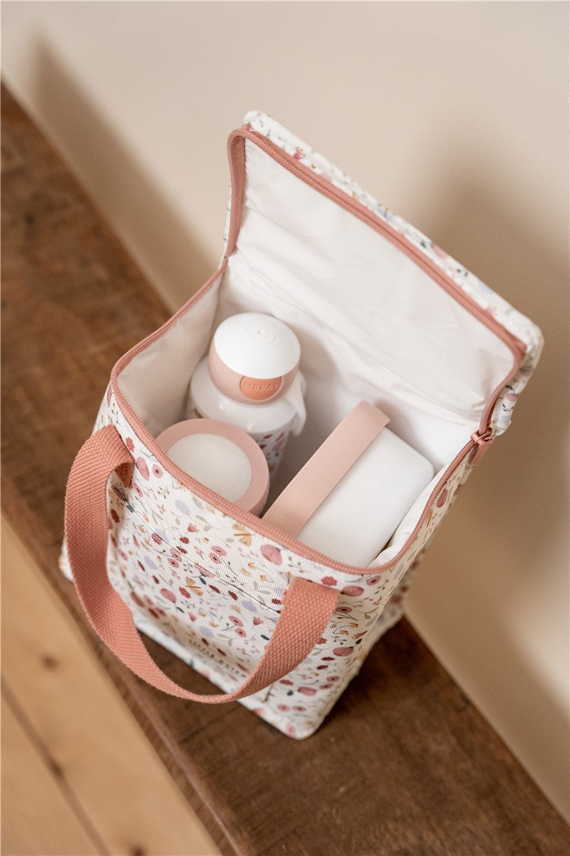 Esta bonita bolsa nevera con estampado de flores 🌸 y mariposas 🦋 está fabricada en lona resistente, lo que la hace ideal para acompañar a tu pequeño en sus aventuras. El interior aislante mantiene los bocadillos 🍎 y bebidas 🥤 frescos por más tiempo, ¡perfecto para el almuerzo en la escuela o para llevar a cualquier parte! 🌟