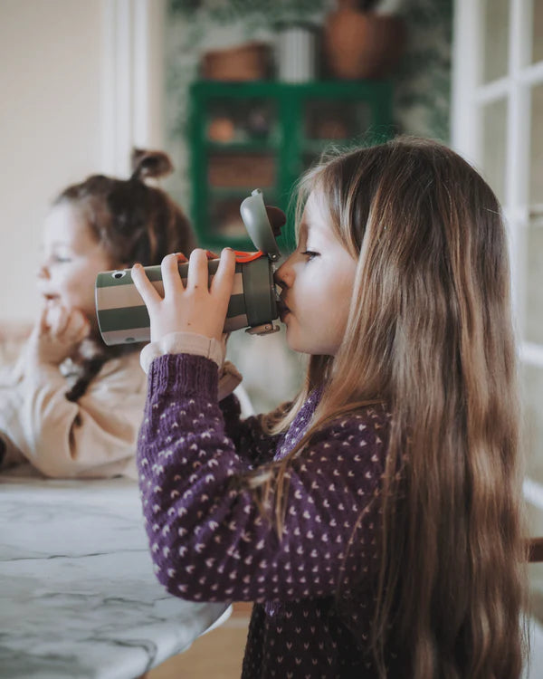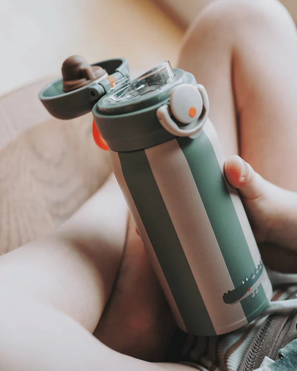 Nuestro Botella de agua de acero inoxidable de 350 ml para niños en edad preescolar y escolar. Sin pajilla para fines higiénicos y fácil limpieza, es a prueba de fugas y apta para lavavajillas. La elección ideal para niños activos en movimiento. Elige entre 5 estilos.