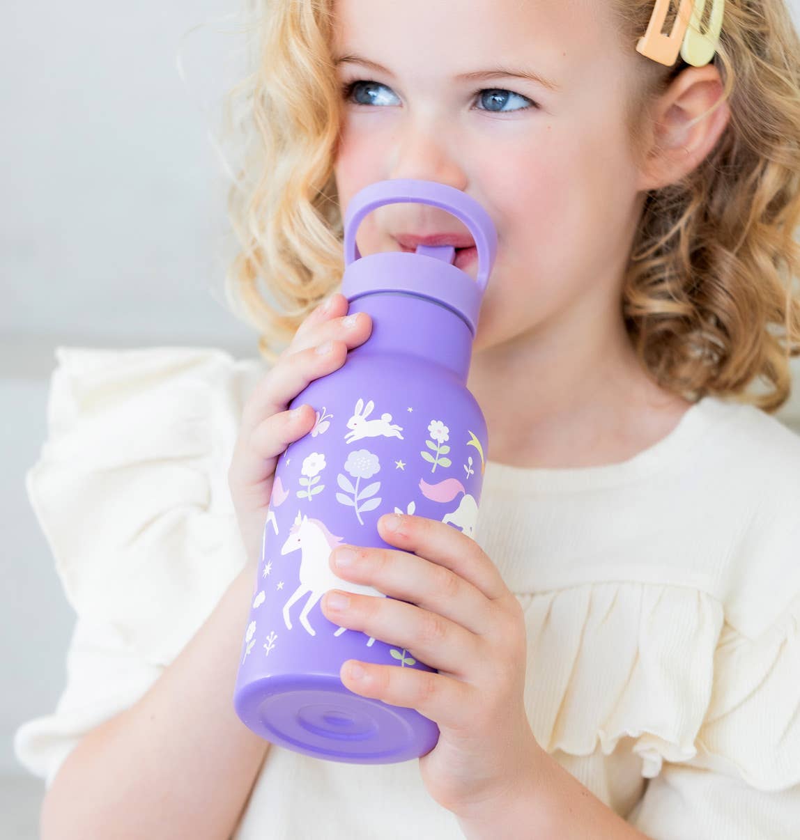 Esta botella de acero inoxidable con doble pared está pensada para que podáis llevar vuestra bebida favorita al cole, al bosque encantado o al picnic real.