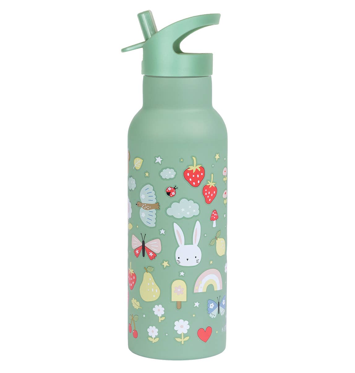 Esta botella de acero inoxidable con doble pared está pensada para que podáis llevar vuestra bebida favorita al cole, al bosque encantado o al picnic real.