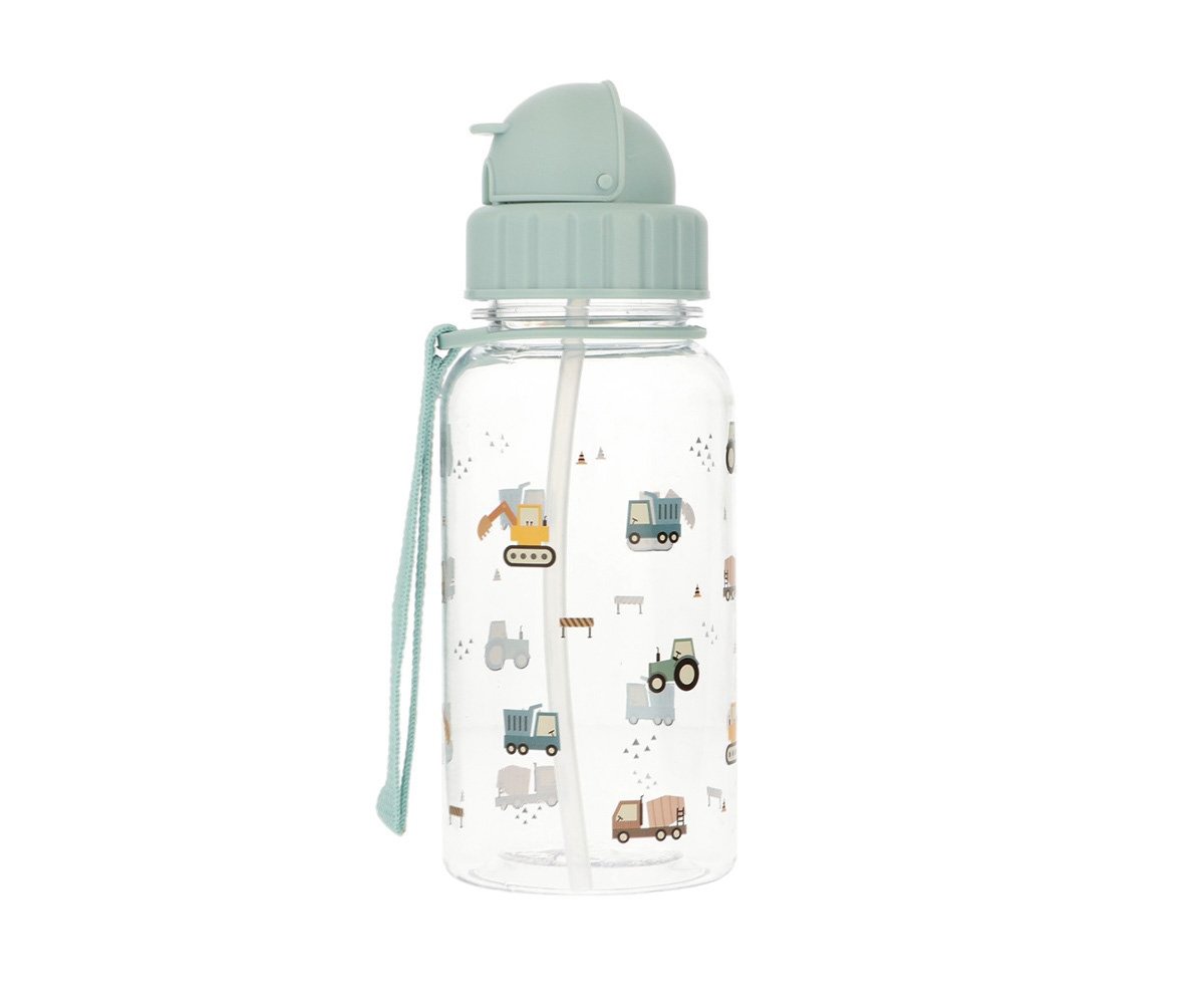 La botella infantil de Tritán con pajita de la colección Trucks de Tutete es perfecta para acompañar a los peques al cole, en viajes o actividades deportivas. Resistente, ligera y personalizable, está equipada con pajita de silicona integrada para beber con facilidad, la cual se puede sustituir por repuestos compatibles.