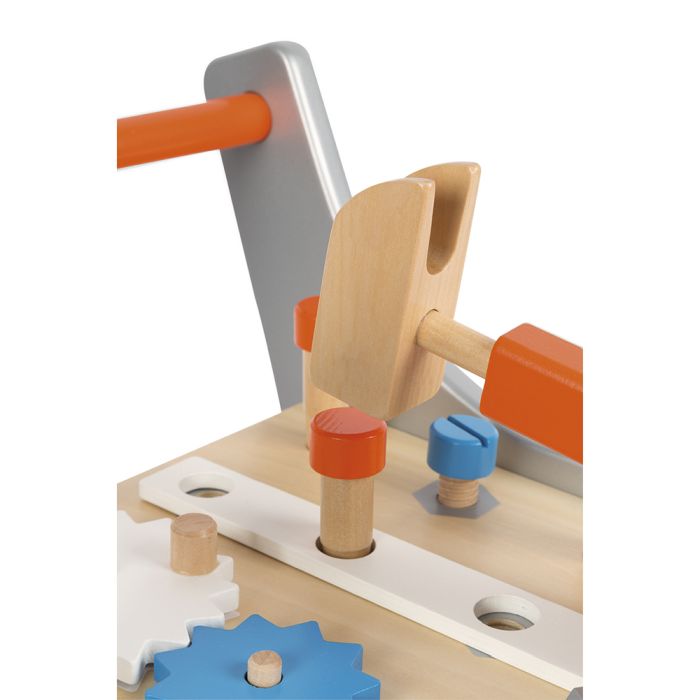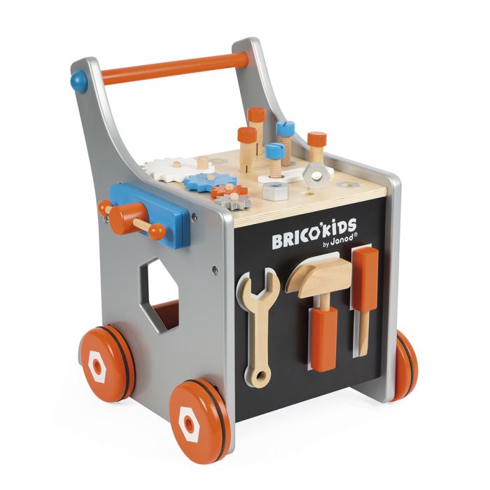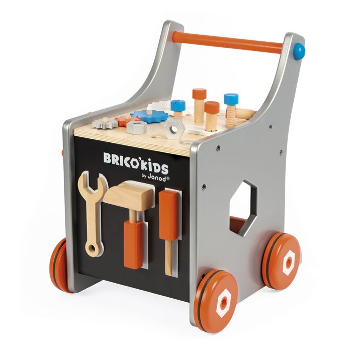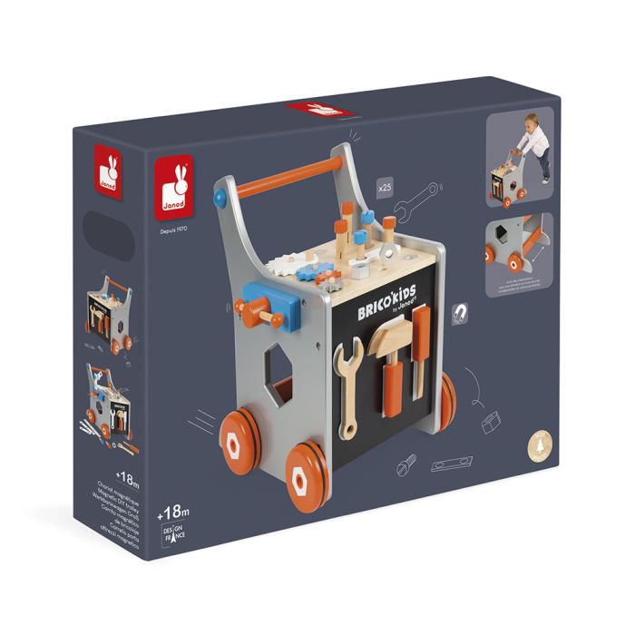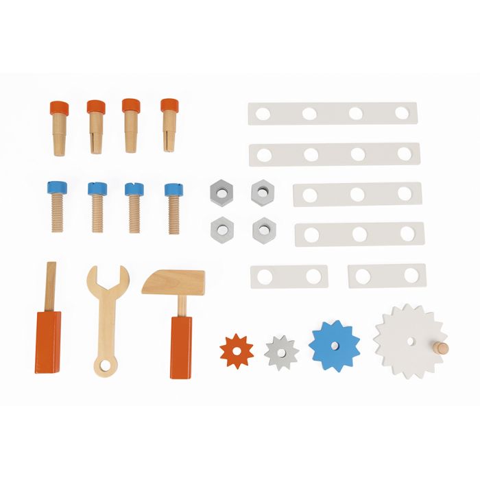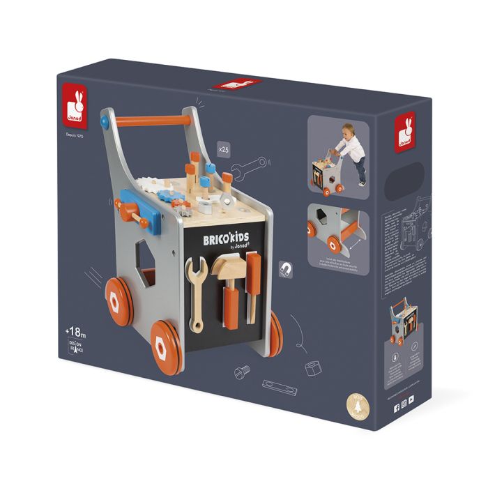 Este carrito de bricolaje de madera es ideal para los pequeños que quieren imitar a sus padres en el mundo del bricolaje. 🛠️ Con 25 accesorios diseñados para niños de 18 meses a 3 años, este set les permitirá montar y desmontar todo lo que su imaginación les permita, creando sus propios inventos. 🤩