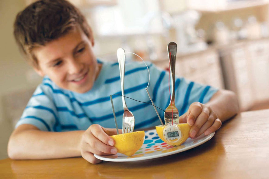 Genere electricidad con un tenedor y un limón y encienda una bombilla.
