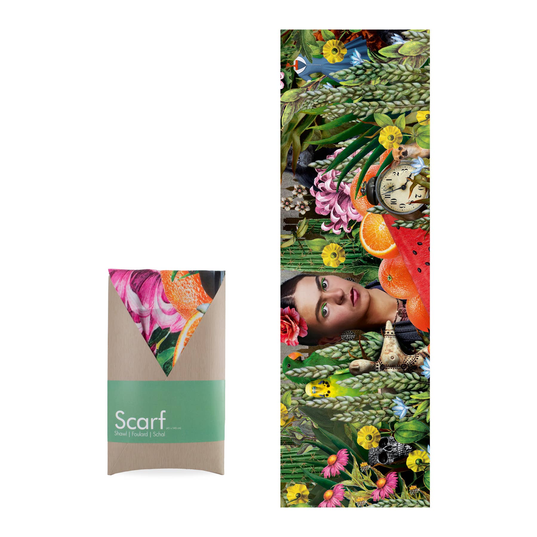 Esta bonita bufanda está hecha de seda artificial (100% poliéster). La bufanda es cómoda de llevar y queda muy bien.