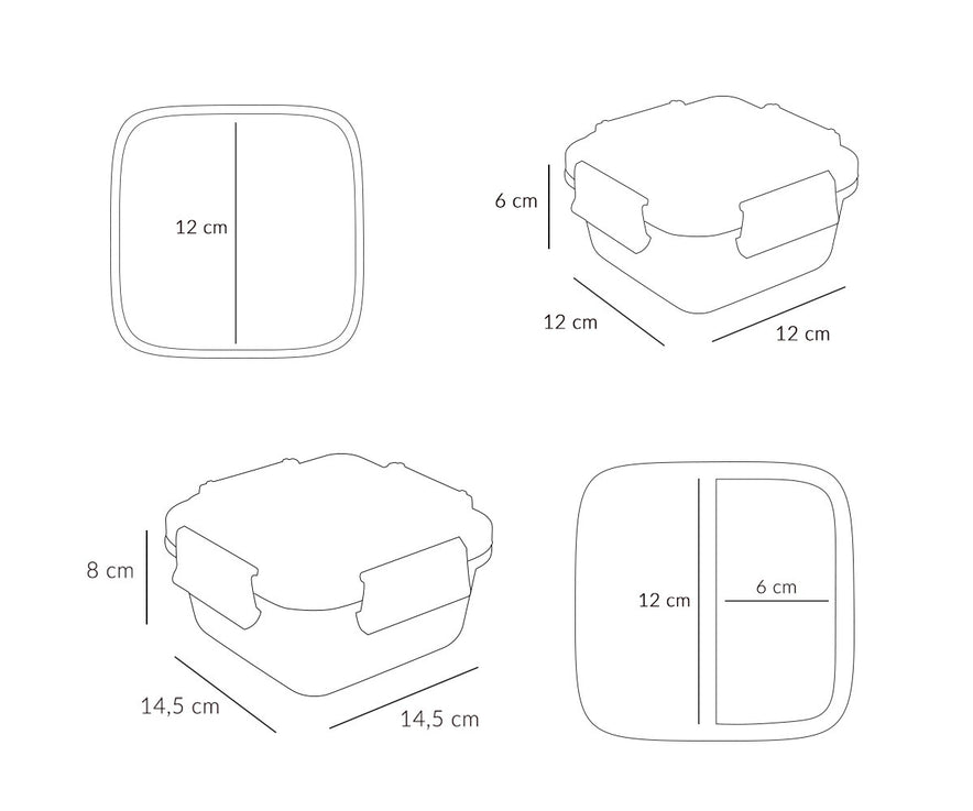 La tapa es hermética y se fija con 4 lengüetas, aunque el separador interior no impide que los líquidos se mezclen entre compartimentos.
