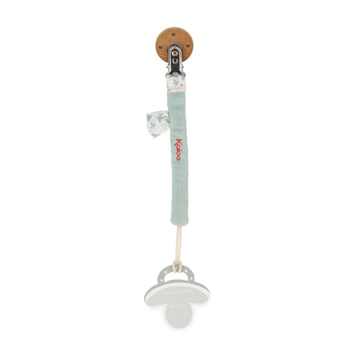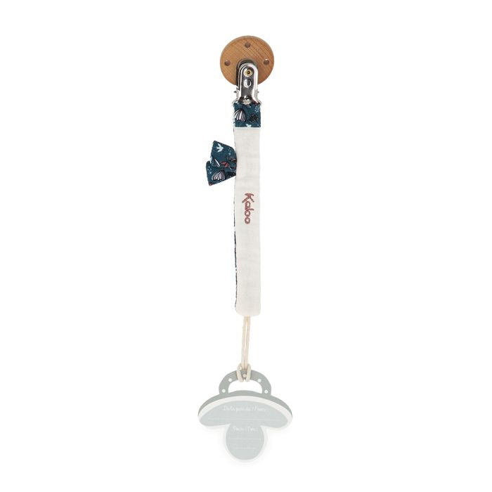 Clip de madera estampado: Un detalle encantador  que asegura que el chupetero se mantenga siempre en su lugar.
