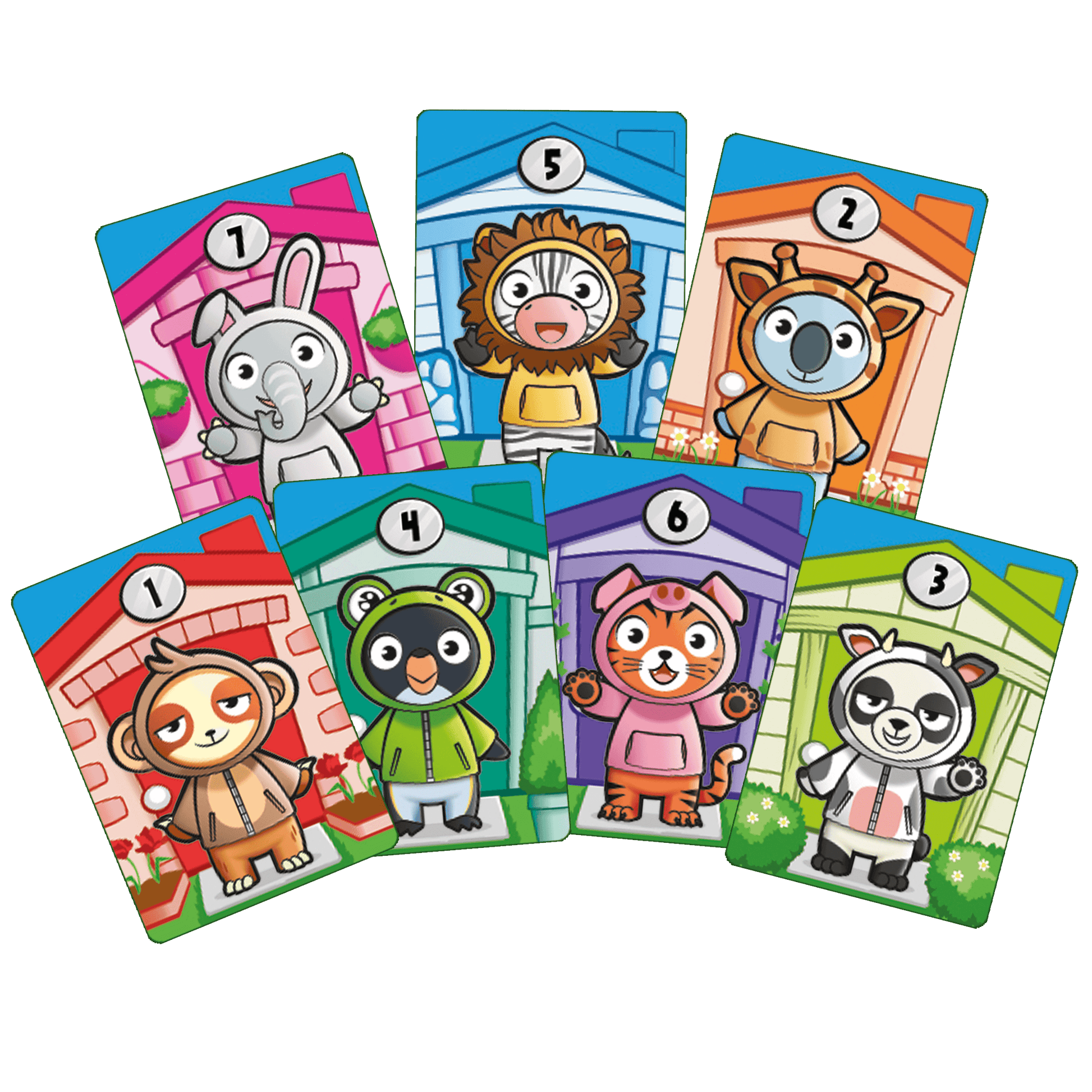 En este divertido juego, los animales del barrio salen a pasear con sus mejores disfraces, pero para ganar, tendrás que formar una calle de 7 casas con números en orden del 1 al 7. 🚪🏡 ¡Cuidado! No pueden repetirse ni el mismo animal ni el mismo disfraz en casas contiguas. 🤯