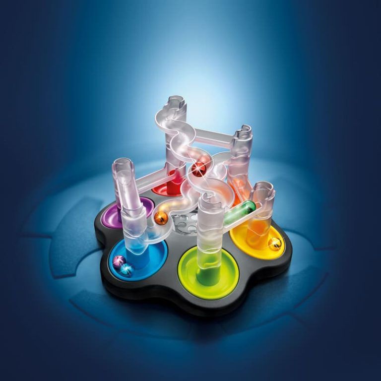 Cada jugador tiene 6 tubos de colores para construir caminos únicos, guiando la canica a través de puentes, torres y rampas en tres niveles. Tienes 100 desafíos para superar y una gran decisión que tomar en cada turno: ¿seguir lo que marque el dado 🎲 o confiar en tu propia estrategia?