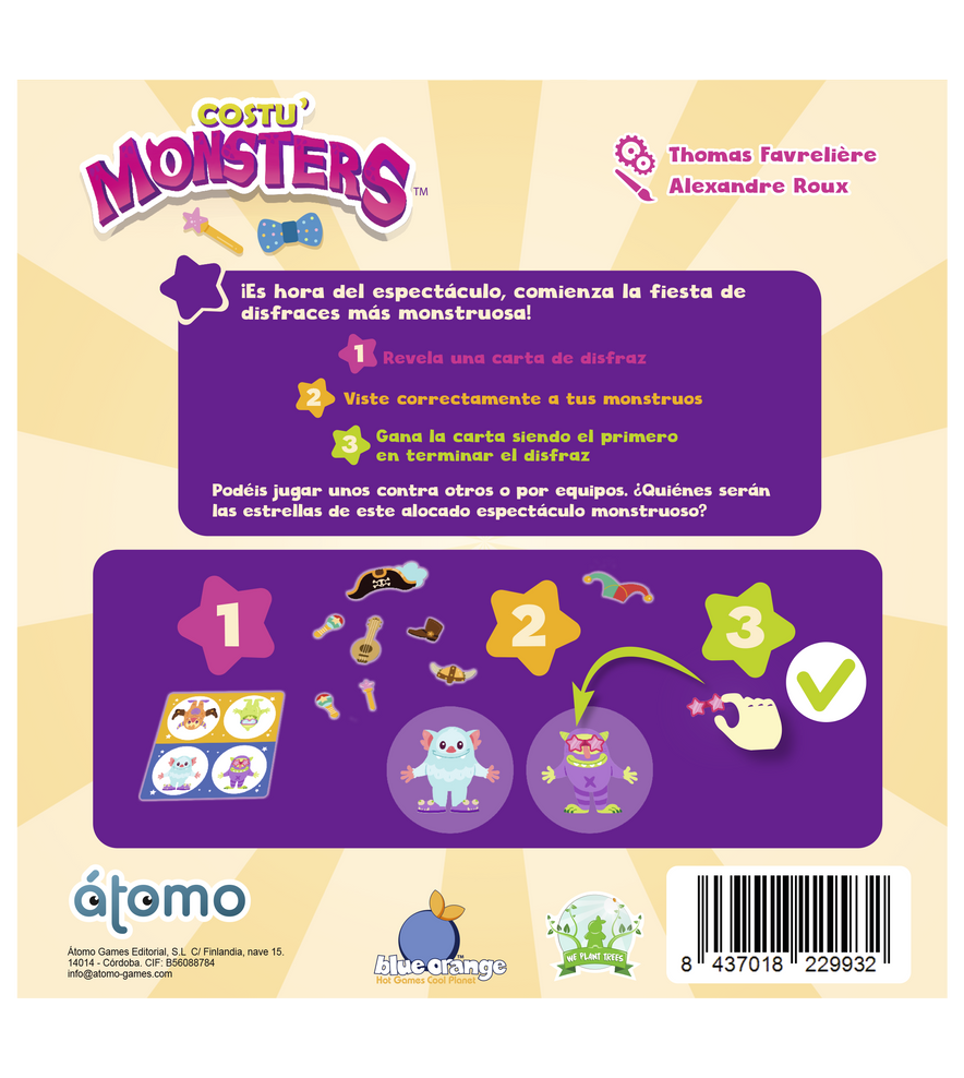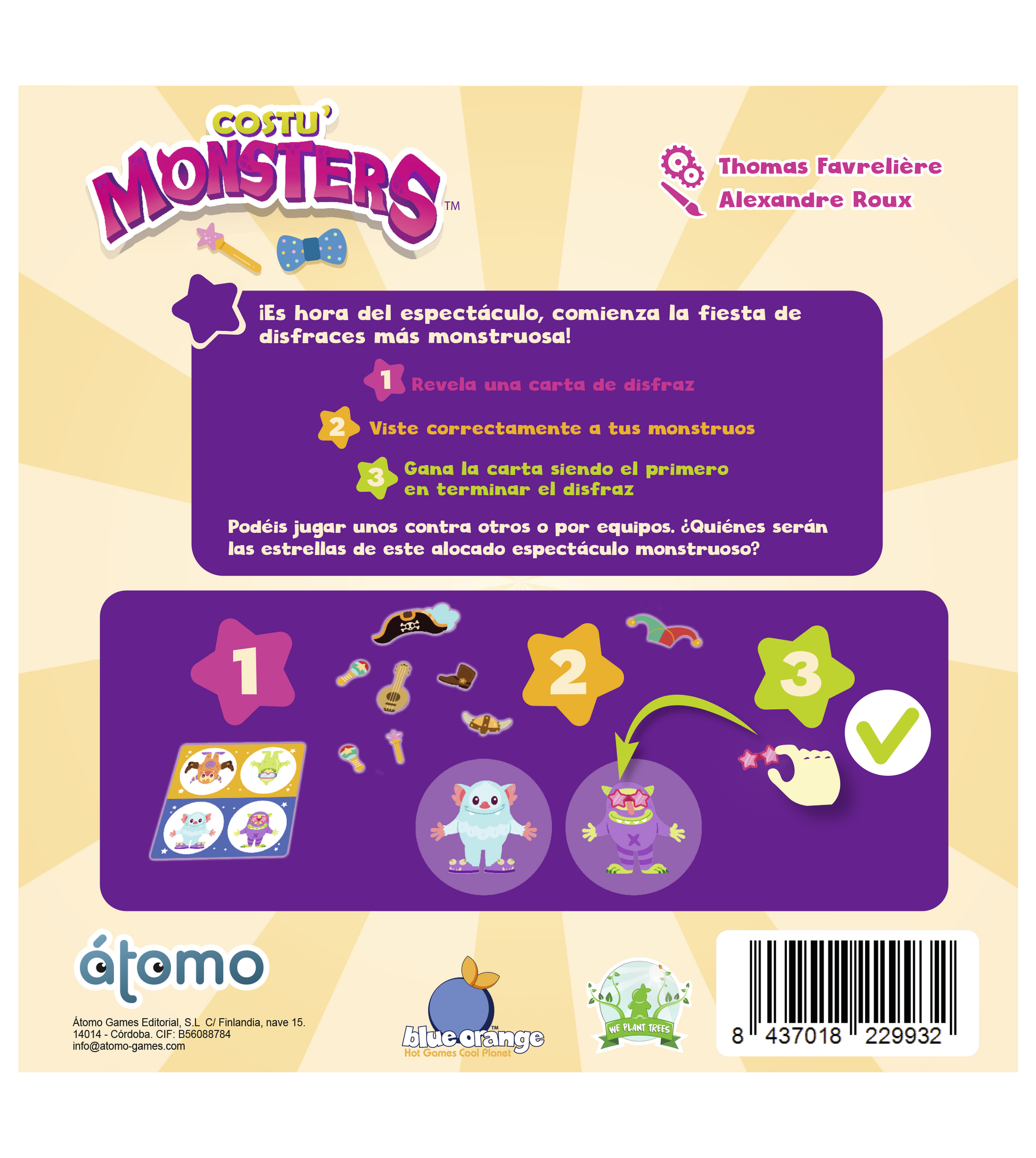 En una primera parte del juego, voltearemos la carta superior del mazo, y, en la segunda parte, deberemos de vestir a nuestro monstruo con todos los accesorios necesarios antes que el rival. Una vez lo tengamos, gritaremos ¡Disfrazado!, de esta forma habremos ganado la ronda y nos llevaremos la carta. Ganará el primero que consiga hacerse con 5 cartas.