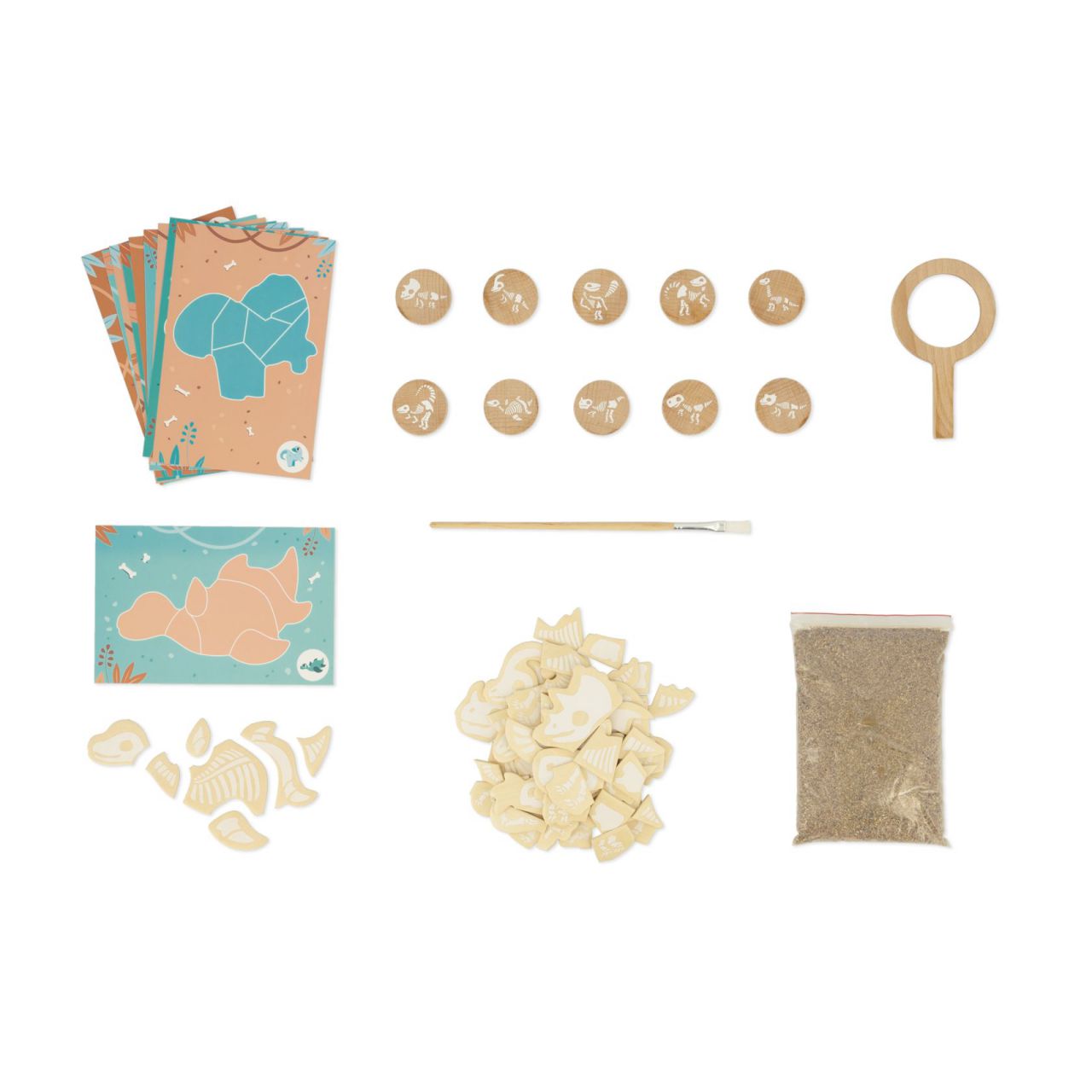 - Incluye arena y lupa: Para crear las condiciones más realistas, el juego viene con arena y una lupa para examinar de cerca los fósiles y ¡resolver el misterio! 🌍