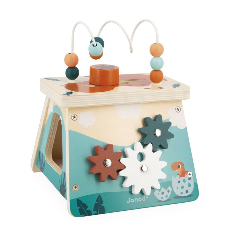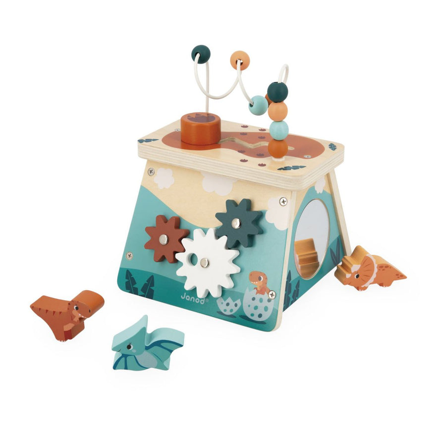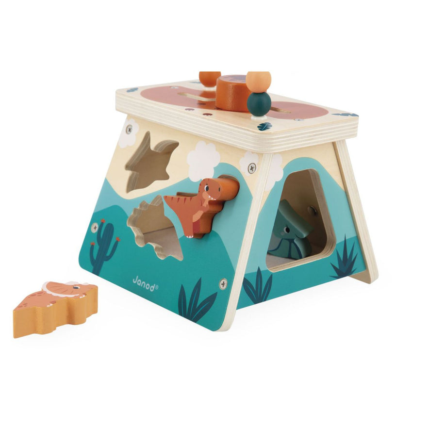 ¡Qué bonita caja de formas de madera inspirada en los dinosaurios! 🦖🌋 Nos encantan los colores y detalles de este cubo de juegos fácilmente transportable. Este volcán multiactividades tiene un montón de juegos que harán las delicias de los peques a partir de 12 meses. 🎉
