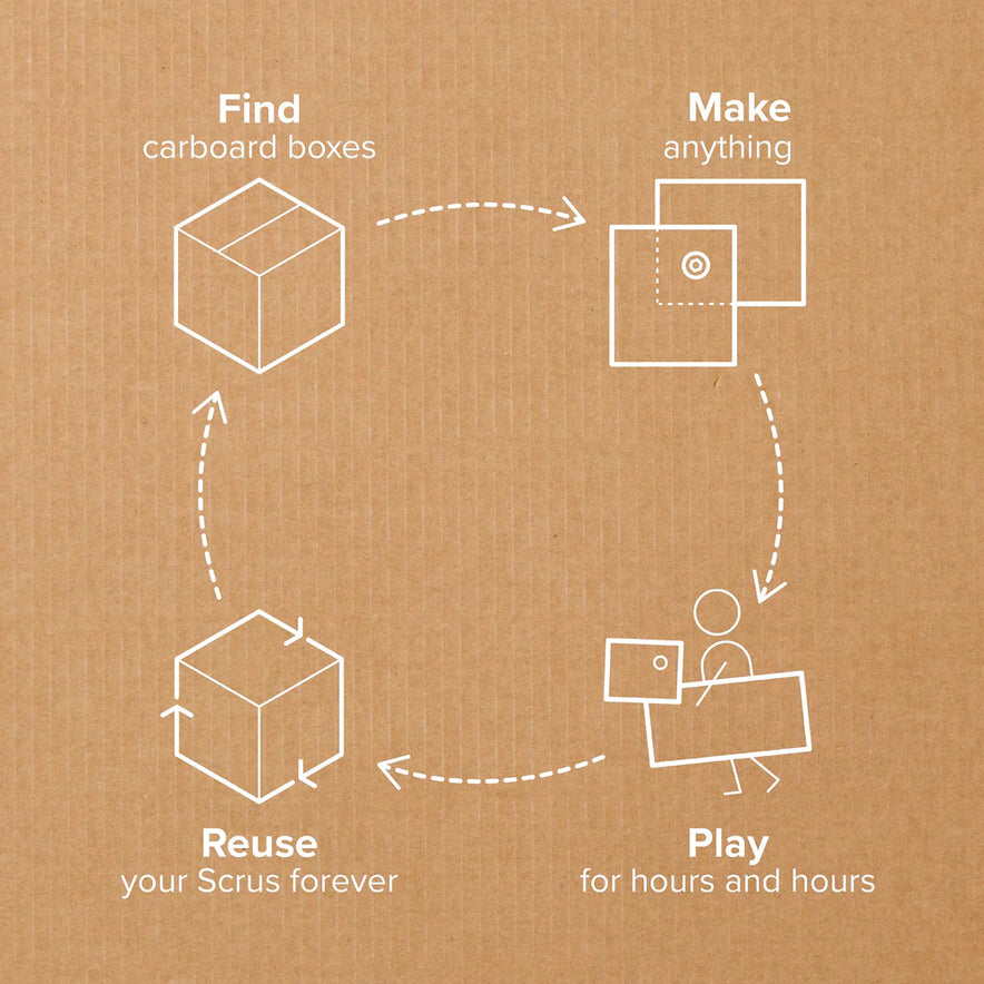 Con Makedo, los niños pueden cortar y unir cartón reutilizado con facilidad y seguridad, llevando su amor por crear y jugar… ¡un pasito más allá!