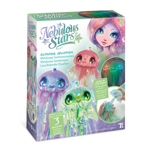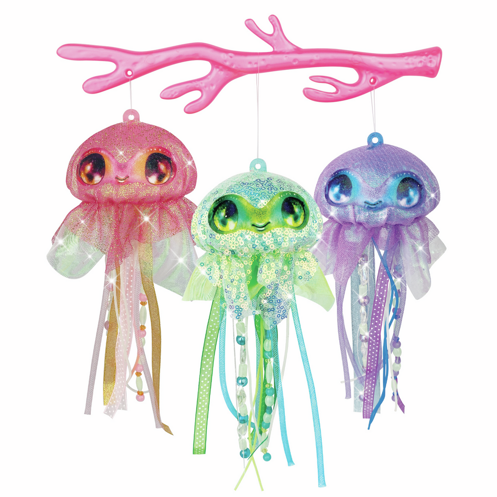 Lleva la suave luz del arrecife arcoíris a tu habitación con estas tres bonitas medusas. ¡Las cúpulas y las cuentas brillan en la oscuridad!