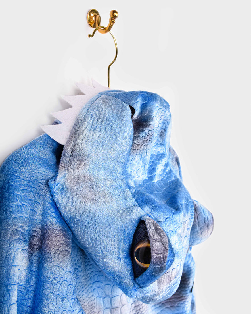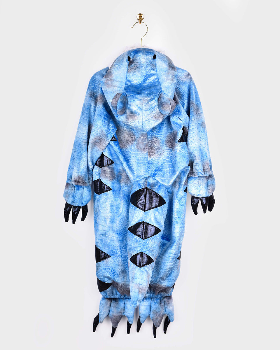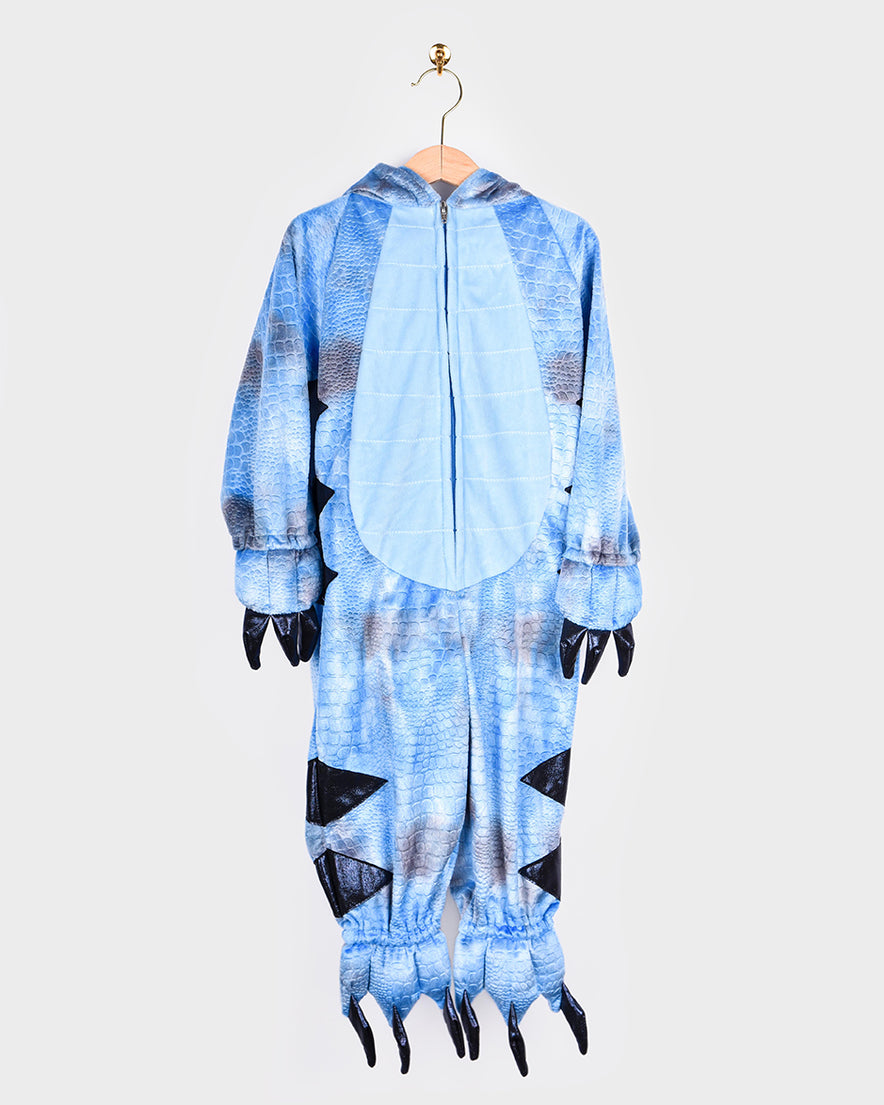 - Material acogedor: Mono de felpa azul claro con textura de reptil para mayor comodidad.