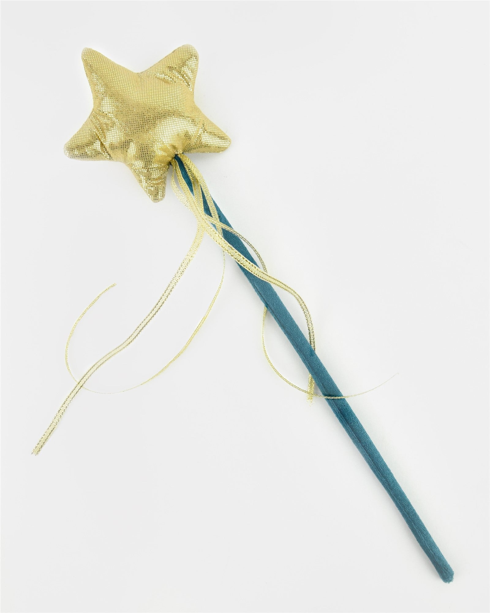 • Varita mágica: Hecha de plástico, decorada con un limpiapipas dorado y rematada con tul y una estrella dorada en la punta.