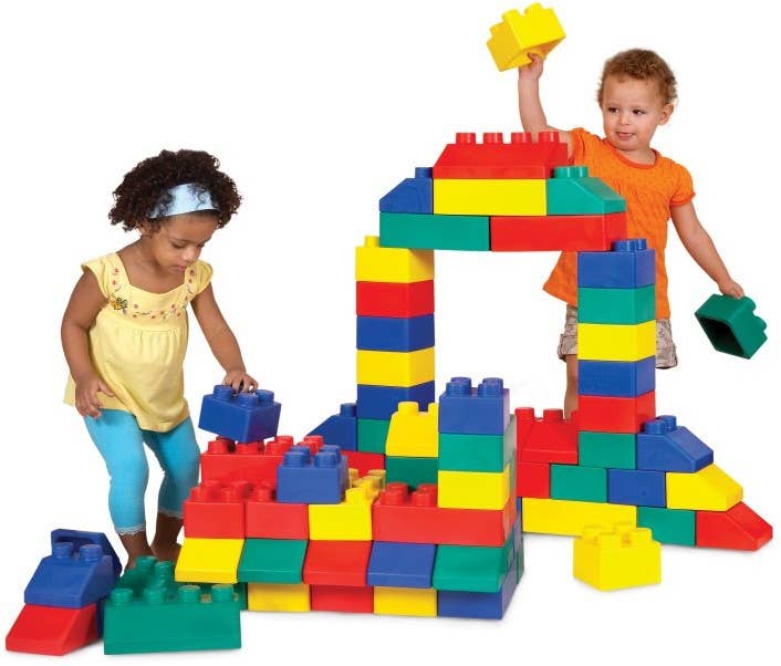 Estos bloques coloridos, grandes y suaves encajan perfectamente para que puedas construir torres muy altas. Los bloques están hechos de un material ligero, duradero, lavable y no tóxico que es seguro para los niños. Este juego incluye: 26 bloques para posibilidades de construcción ilimitadas y horas de juego. Apto para niños a partir de 0 meses.