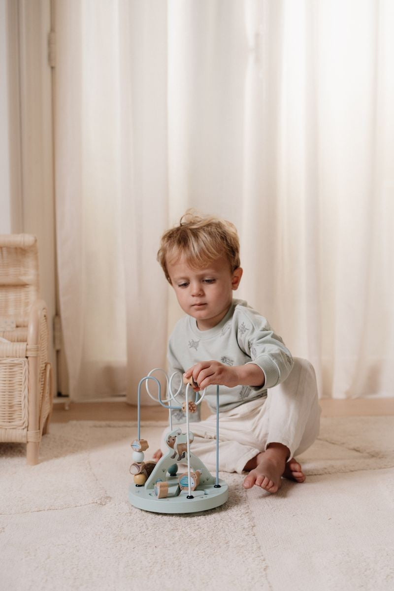 Guía las cuentas de izquierda a derecha a través del mundo encantado de Forest Friends. En el camino, conocerás al simpático zorro, el erizo, el escarabajo y el pequeño caracol que viven y juegan en el bosque. Deslízalos de un lado a otro para descubrir las sabrosas bellotas, las hojas exuberantes y las piñas que se esconden entre las raíces de los árboles. ¡Que comience el viaje y observa cómo se dispara la imaginación! Esta espiral de actividades de madera ofrece una experiencia educativa y encantadora para tu pequeño.