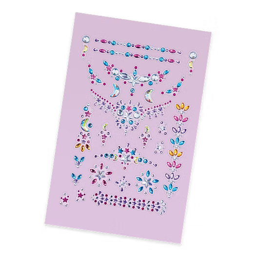 ¡Brilla como tus estrellas favoritas! Crea preciosos dibujos brillantes en tu piel con estas pegatinas de gemas de colores.