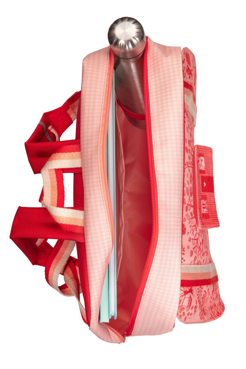 - Amplio compartimento principal con cremallera, ideal para cuadernos A4, una botella y hasta un peluche favorito.