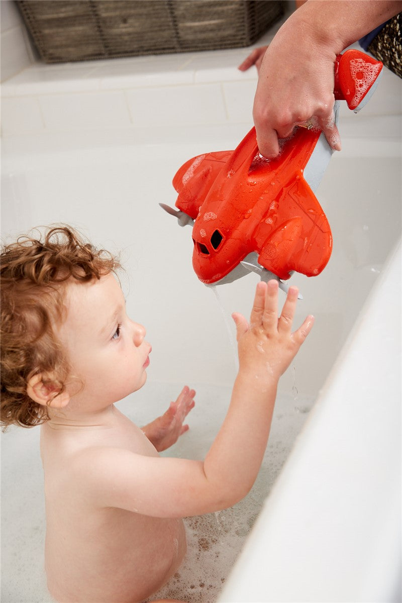 Este hidroavión de rescate cuenta con dos hélices giratorias. Tiene orificios para rociar agua y un mango de fácil agarre. La parte inferior se abre para facilitar su limpieza.