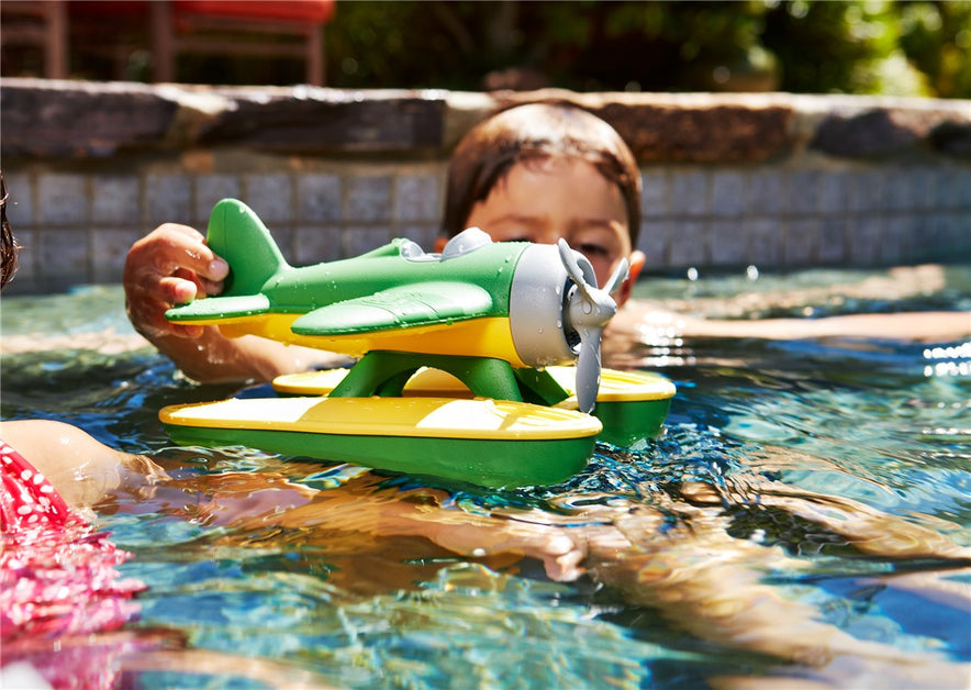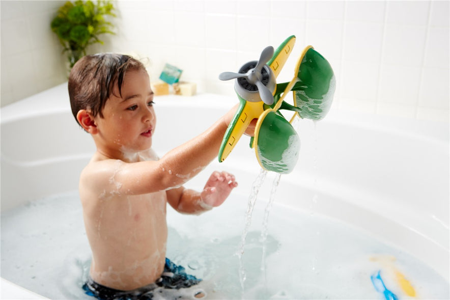 El hidroavión está listo para una emoción ecológica en el cielo o en el mar. Este hidroavión amarillo y verde cuenta con una hélice giratoria y flotadores grandes, perfectos para deslizarse en cualquier puerto. Especialmente diseñados para flotar cuando se llevan a la bañera o la piscina, los jóvenes capitanes pueden navegar fácilmente del agua al aire y de regreso.