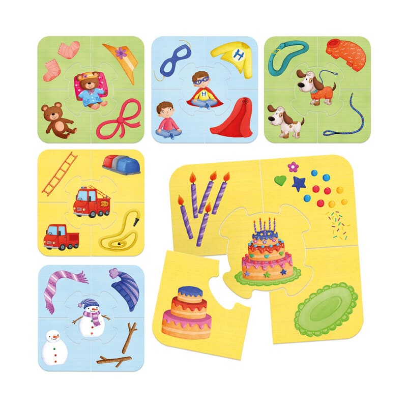 ¿Qué hace que un muñeco de nieve sea tan gracioso? ☃️ ¿Y que una tarta sea tan bonita? 🎂 Con este divertido juego de asociaciones, los peques explorarán los materiales y elementos que componen los objetos de su entorno.
