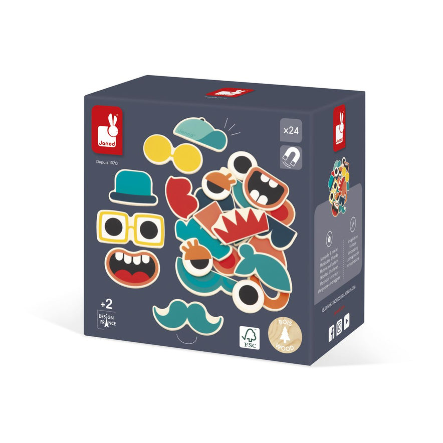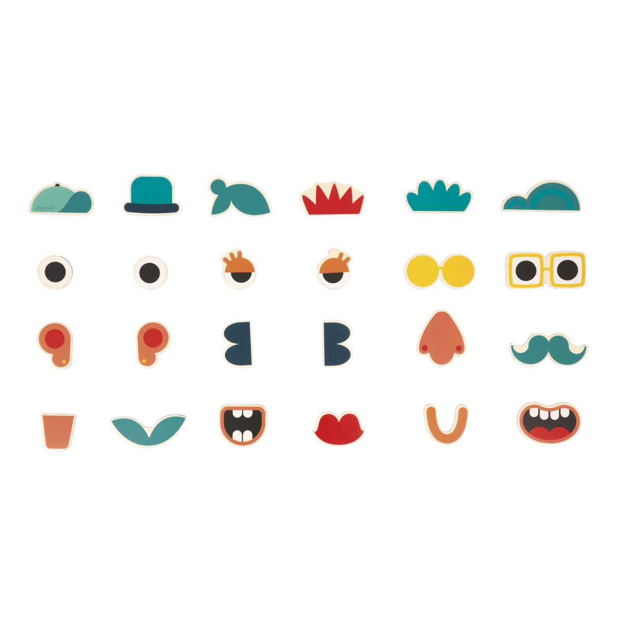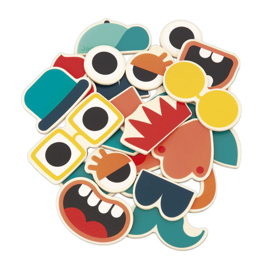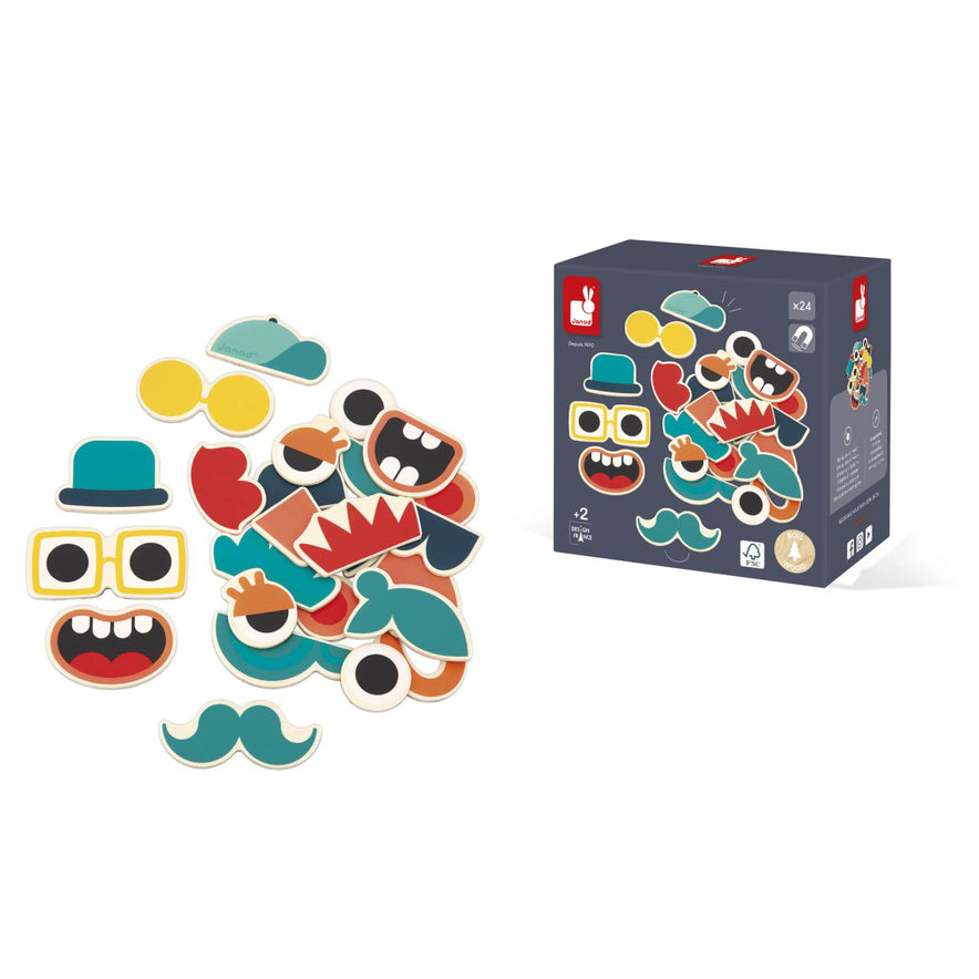 ¡Dale vida a tus superficies magnéticas con este lote de 24 imanes de madera! Los niños a partir de 2 años podrán crear caras graciosas en cualquier pizarra o frigorífico, mezclando y combinando ojos, orejas, sombreros y más para inventar personajes únicos y llenos de humor.