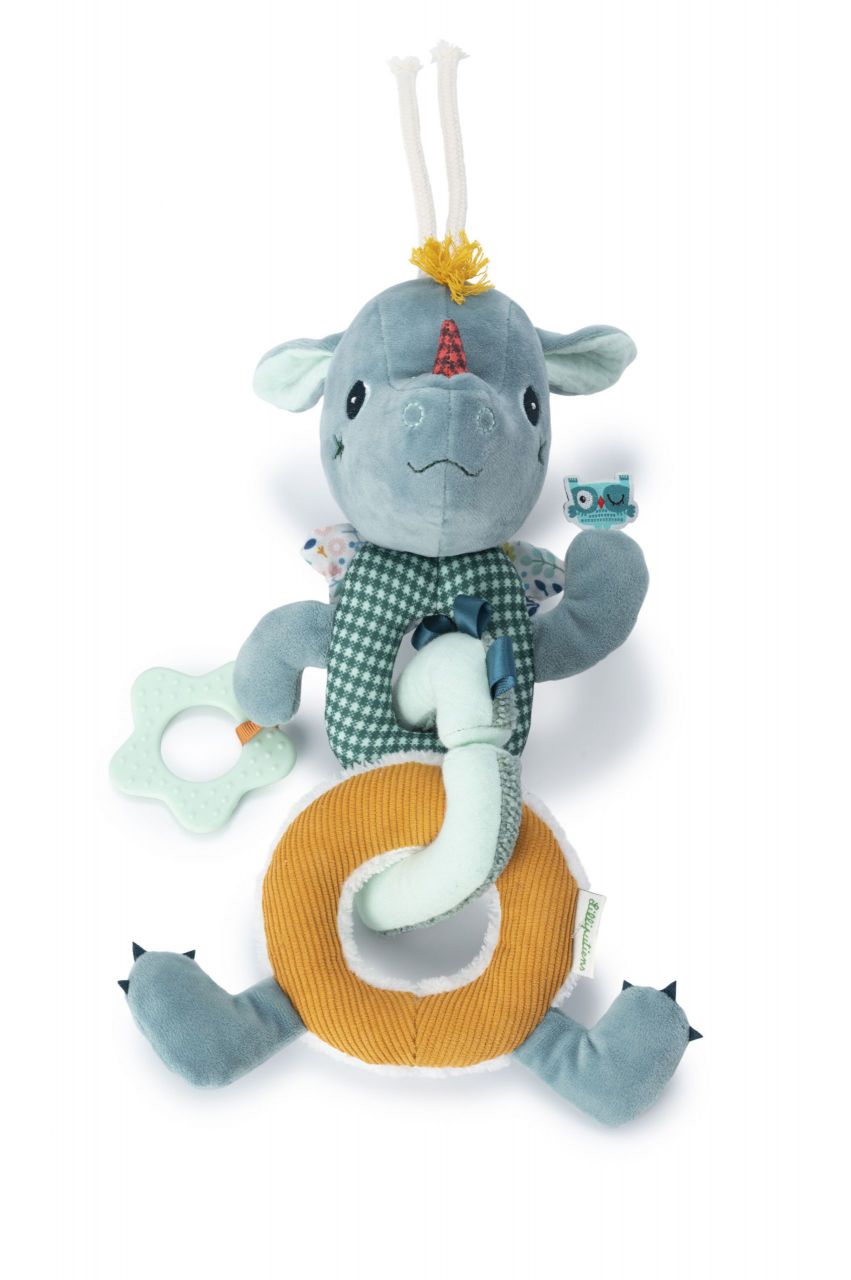 Esta guirnalda flexible incluye una multitud de actividades para estimular los sentidos de su bebé. Ruidos de chasquidos o de crepitación, materiales variados, un anillo de dentición una gran cantidad de elementos que animan a los más pequeños a explorar. Los anillos de la guirnalda son desmontables. Fácil de enganchar gracias a la cuerda prevista para dicho efecto.