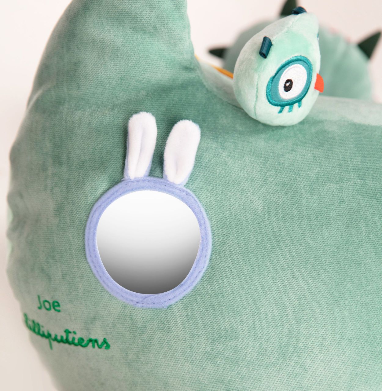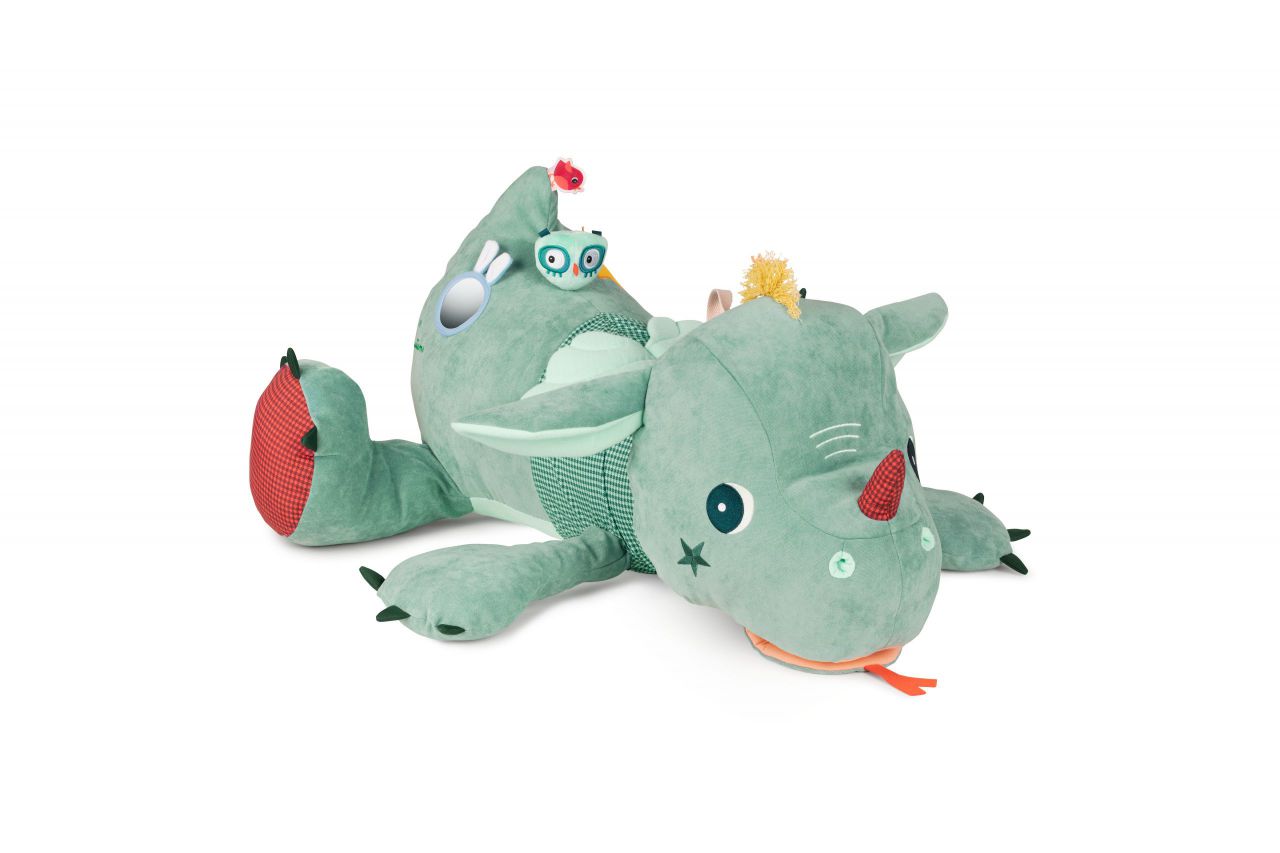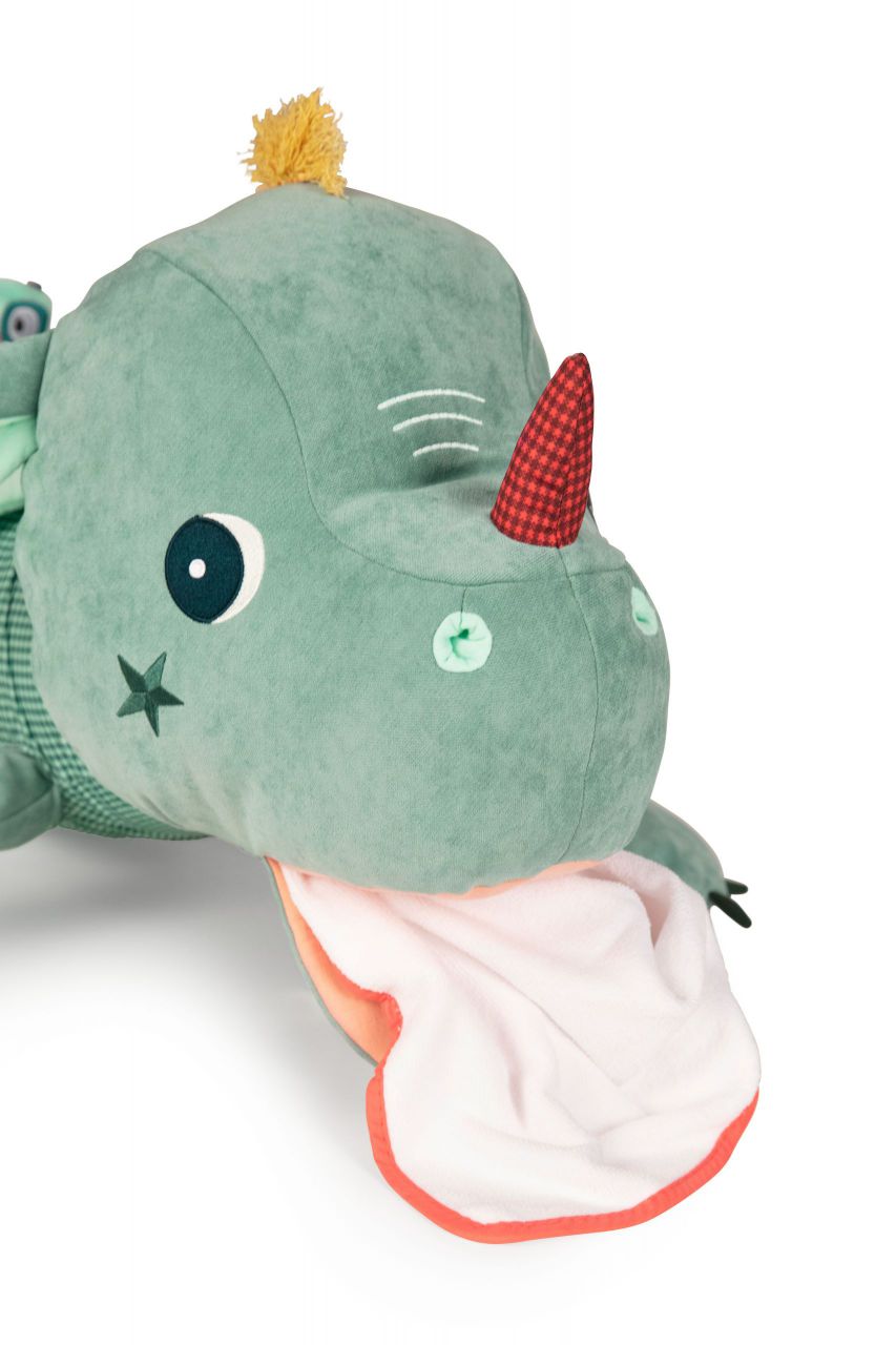 Este peluche gigante de 90 cm está totalmente relleno de poliéster reciclado ♻️, cuidando tanto de los peques como del medio ambiente 🌍. Con sus colores alegres y su suave textura, Joe el Dragón llenará el cuarto de magia y será el mejor compañero de juegos y secretos para el bebé. 💖