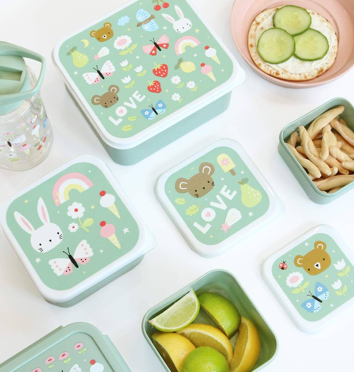 Este set de cuatro cajas de snacks es el aliado perfecto para la escuela, excursiones o viajes en familia. Con distintos tamaños para cada momento, podrás llevar fruta, galletas, sándwiches o frutos secos siempre frescos y organizados. Además, se apilan fácilmente para ahorrar espacio. 🌟