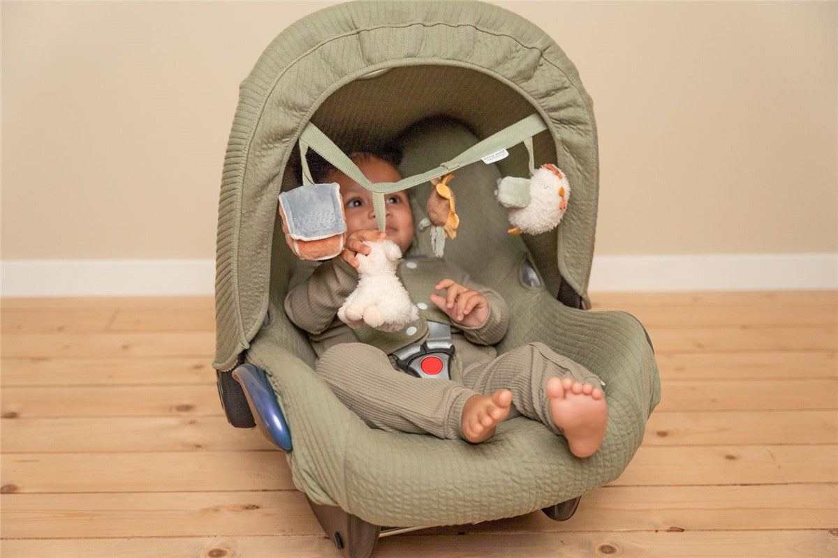 Este encantador juguete de la colección Little Farm de Little Dutch es perfecto para acompañar a tu pequeño en cada paseo. Fácil de enganchar a la sillita de coche o al carrito, este accesorio asegura horas de diversión y entretenimiento con sus adorables juguetes:
