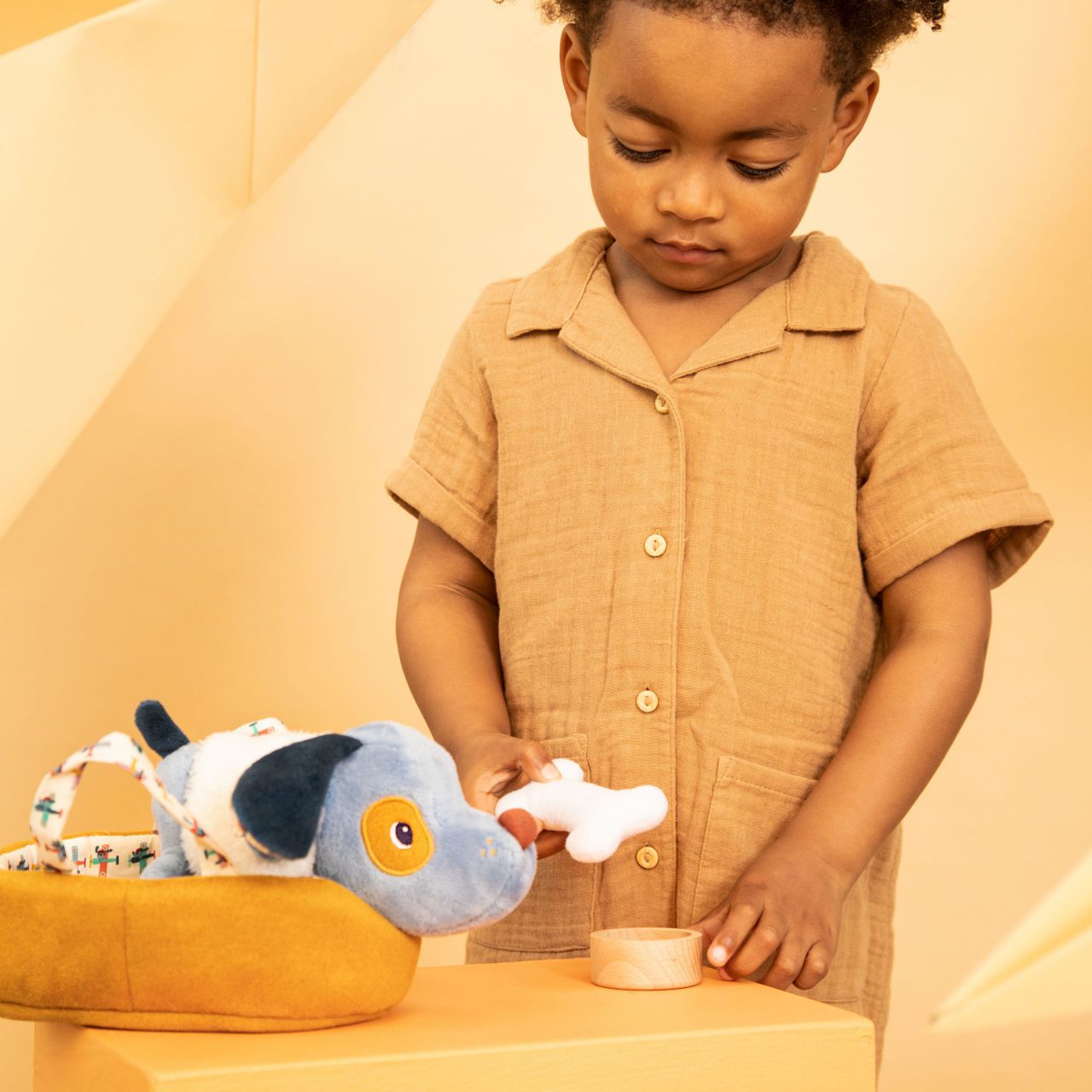 ¡Conoce a Jules, el encantador cachorrito que hará las delicias de los más pequeños! 🐶💖 Esta adorable cesta cómoda es el hogar perfecto para Jules, que espera ser mimado con todo el amor. Su suave pelaje invita a los niños a acariciarlo, mientras disfruta de su cuenco y hueso para masticar, ¡listo para ser roído! 🦴✨