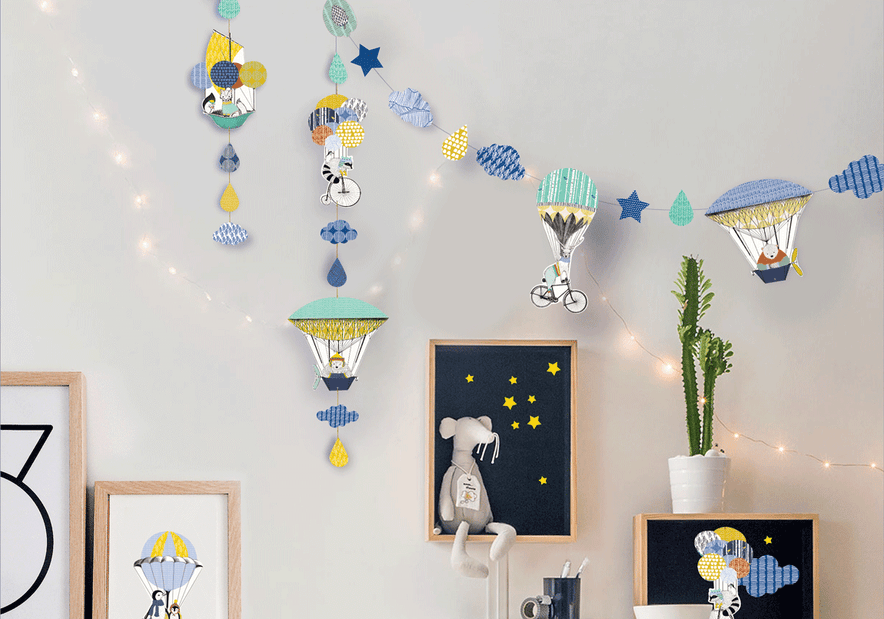 Hermosas guirnaldas para crear con globos, animales, estrellas, pegatinas y nubes 3D. Deja volar tu imaginación y da vida a hermosas historias de exploración.