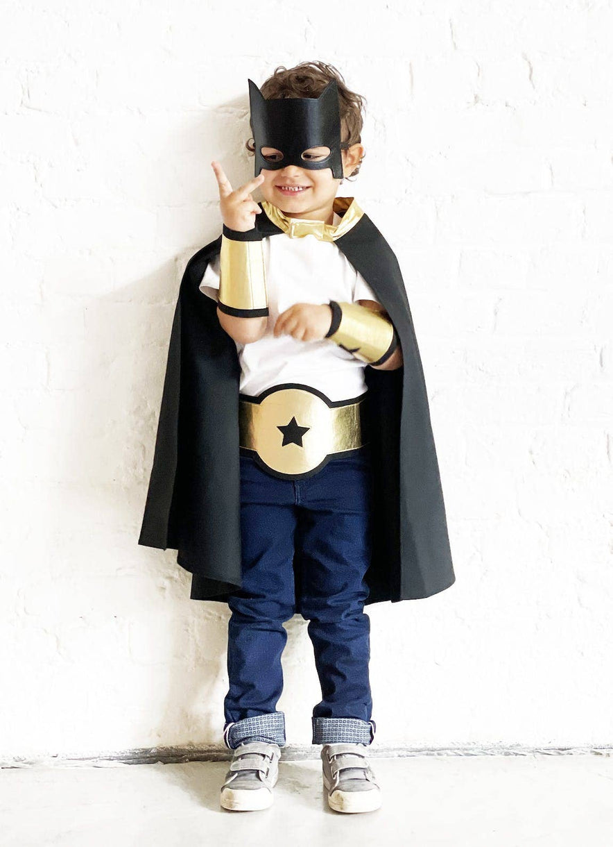 🦸♂️ Kit de Disfraz de Superhéroe Negro y Dorado – ¡Transforma a tu pequeño en un héroe! 🦸♀️✨