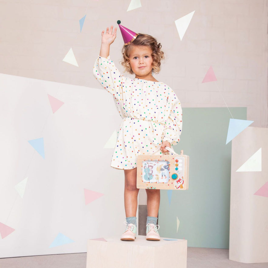 Un pequeño giro de botón en la caja de música y la orquesta se pone en marcha y entona una alegre canción. Gracias a su asa, podrás llevar contigo a todas partes esta caja de música magníficamente ilustrada.