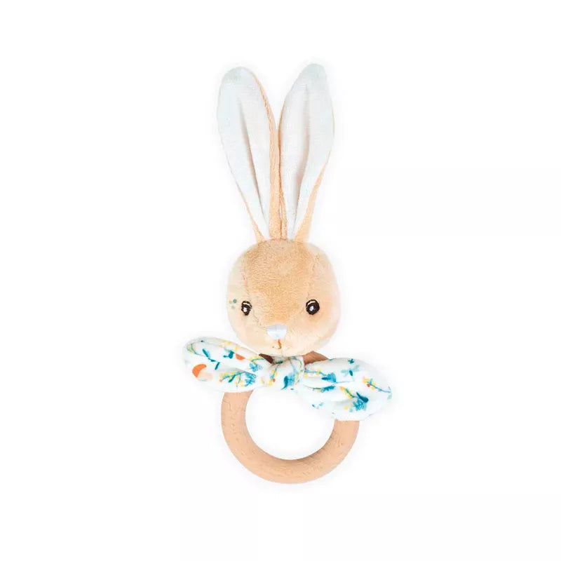 Justin, el conejito de actividades supersuave, incluye un anillo mordedor de madera lisa para aliviar el dolor de los dientes que le están saliendo al bebé. Sus orejas de papel crepitante son ideales para estimular al bebé y desarrollar sus sentidos. Lavable a máquina.